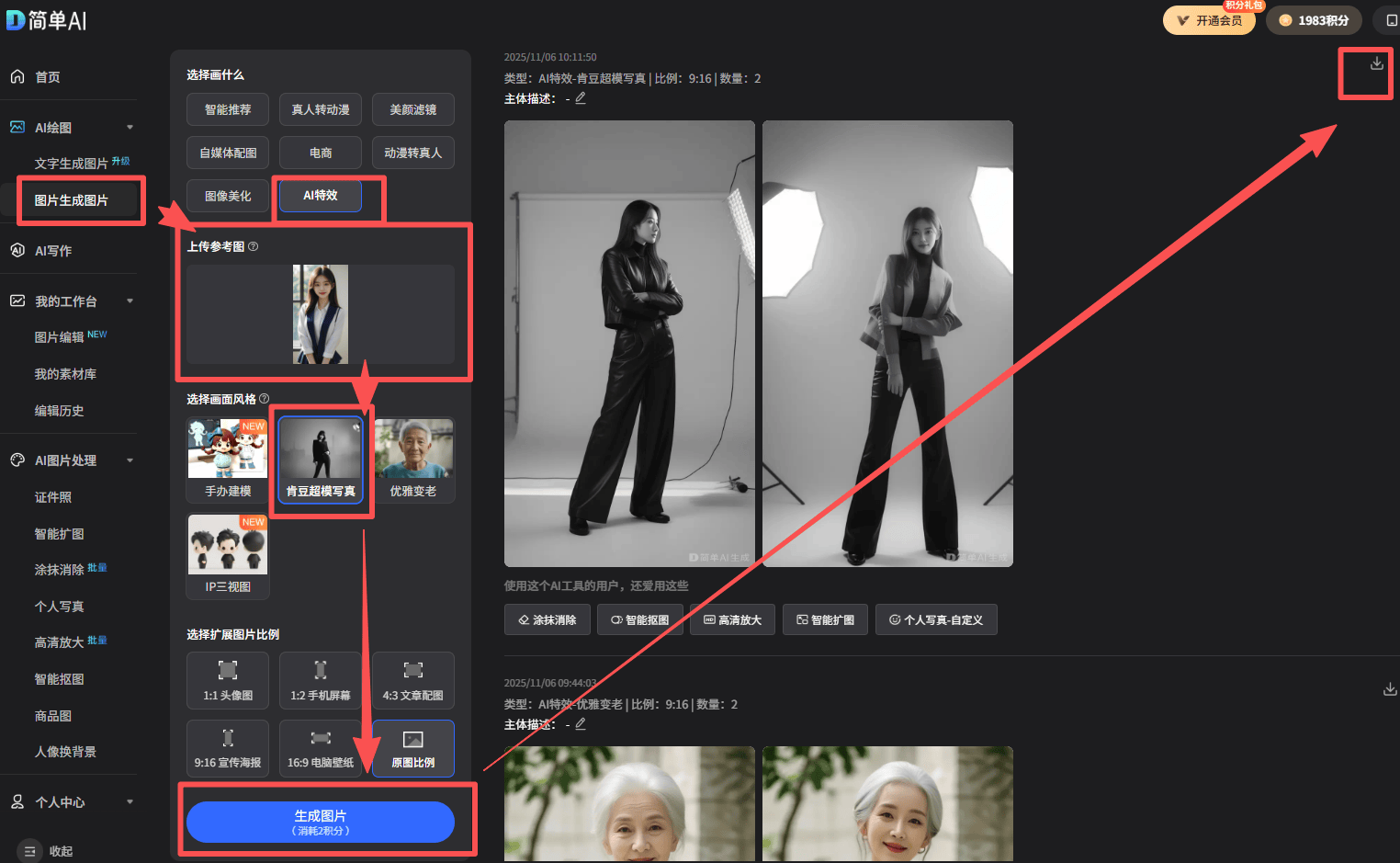 2️⃣ 戳图生图——AI特效——肯豆超模写真按钮