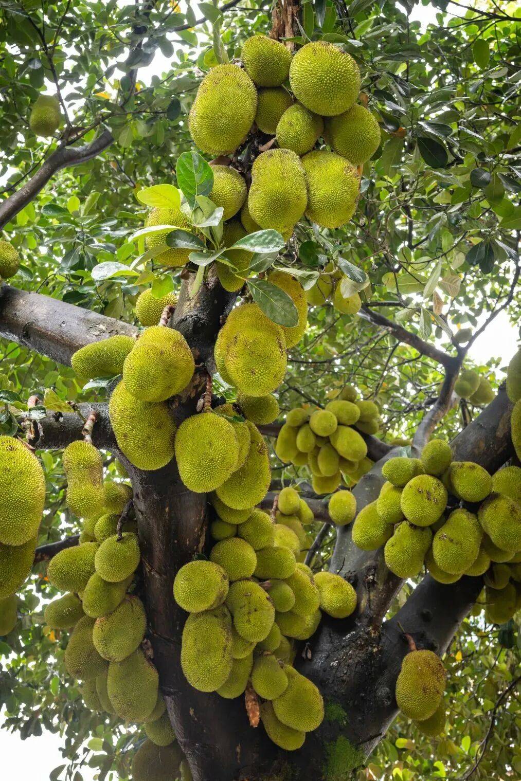 菠萝蜜的挂果数量并非一成不变,而是受到多种因素的共同影响。其中,生长环境、树龄、品种、气候和土壤条件以及管理水平都是决定产量的关键因素。初入挂果期,一棵树结果一般为5至10个;进入盛果期后,单株结果可达数十个。像这棵挂果400多个的菠萝蜜树,主要因其较长的树龄、巨大的冠幅、良好的土壤水肥条件和零星种植的优势,虽是个例,却生动印证了这片土地孕育甜蜜的能力。