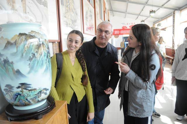 11月1日,山东交通学院顿河学院师生正在山东淄博孙佳陶瓷文化馆参观学习。当日,山东交通学院顿河学院大学生实训基地正式落户淄博孙佳陶瓷文化馆,来自俄罗斯的外教及中俄师生70多人,详细了解了陶瓷琉璃艺术。