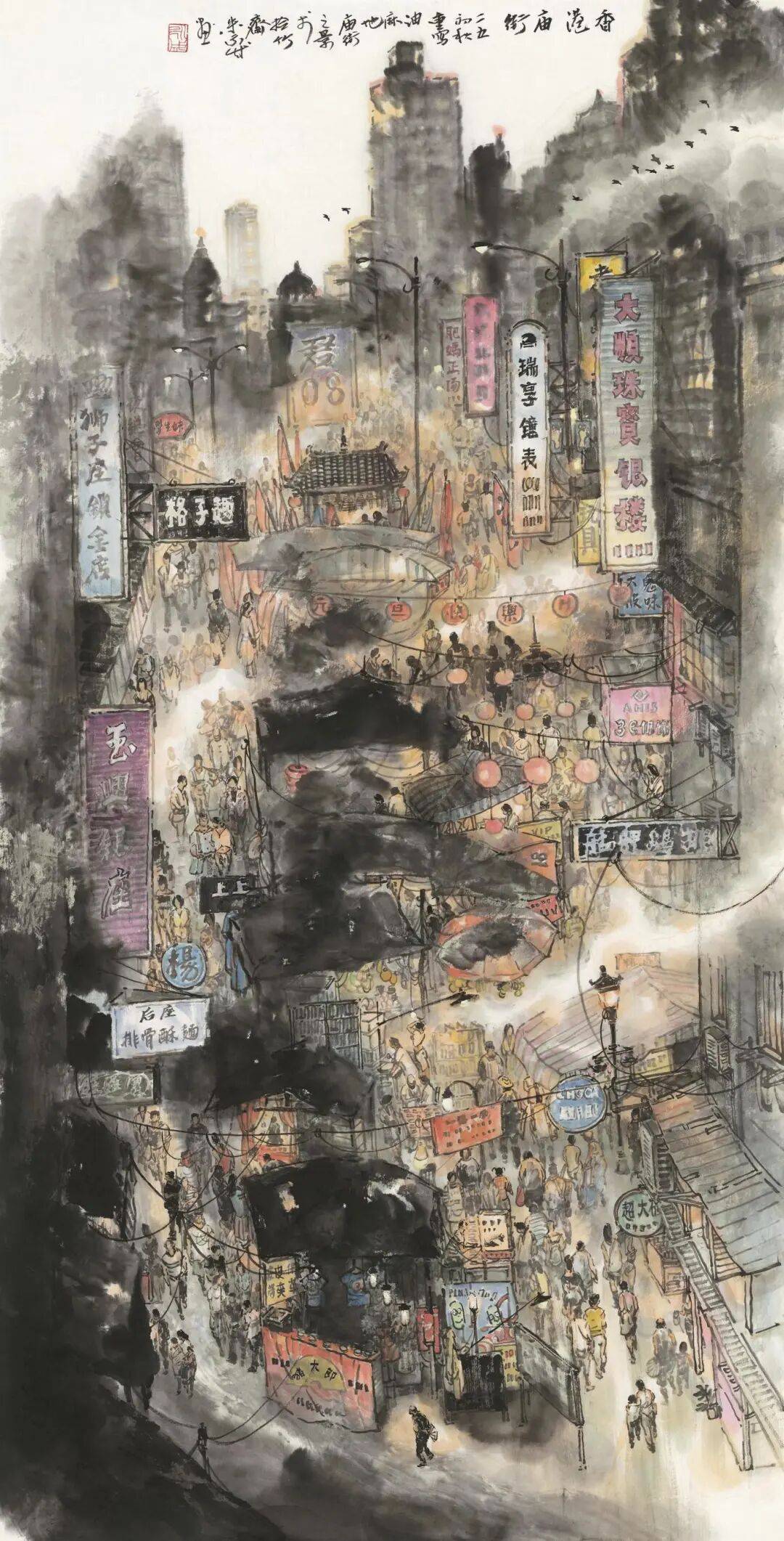 《香港庙街》 137×69cm 朱永成