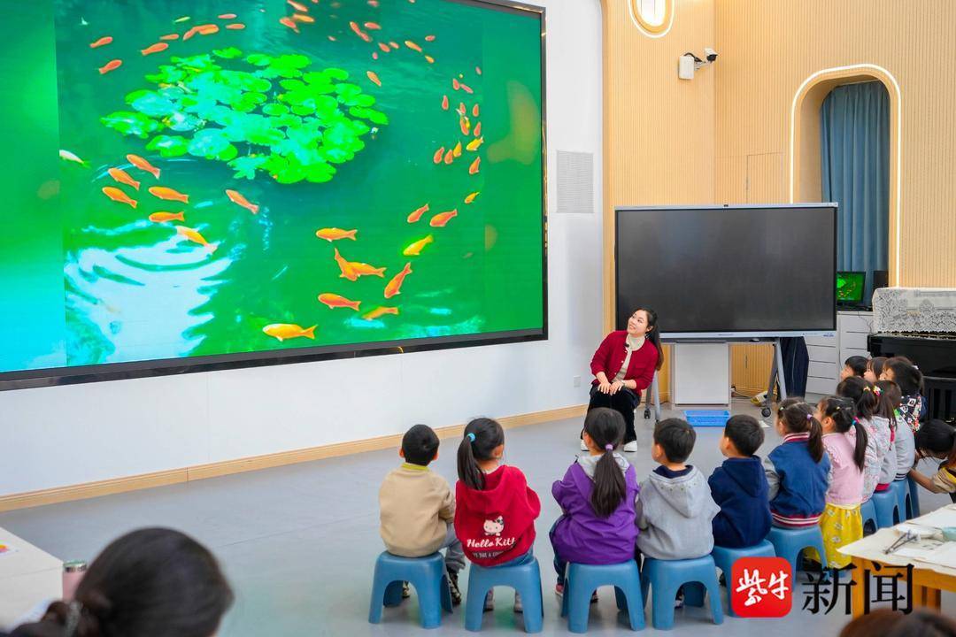 南京市梅花山庄幼儿园刘可音老师带来的大班美术活动《鱼戏莲叶间》同样亮点十足。她利用AI工具,让孩子们绘制的“鱼戏莲叶”水墨画从静态变为动态,原本停留在纸上的小鱼“游”了起来,莲叶也随微风轻晃。“我的这两条小鱼在说悄悄话,这条小鱼有点害羞,它躲在莲叶里。”孩子们还分享自己的创意,童趣与科技的融合在此刻尽显。