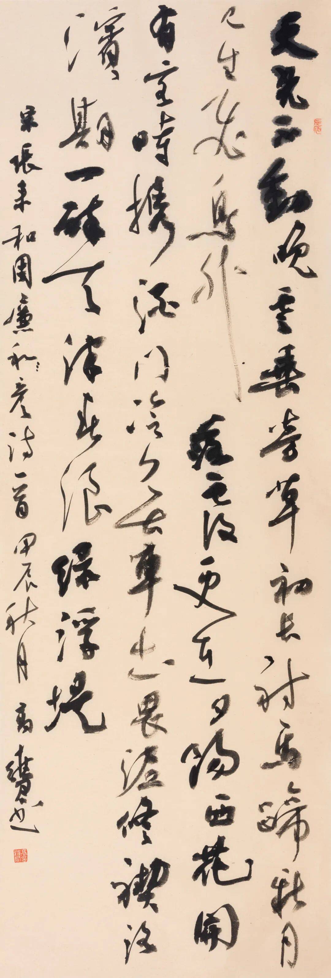 松和自然是身心的共同目标。书法艺术从表现形式上讲,又是各种关系的平衡。以性情为纽带,连接笔墨所造就的空间节奏所产生的秩序,从而构成一个有情有象的小世界。以抽象性的点画表达,以形象性的思维和意象性的陈述,体现了书法艺术的生命情感的真实不虚。透视出深一层文化内涵和生命体悟在空间中运动,周流不息。