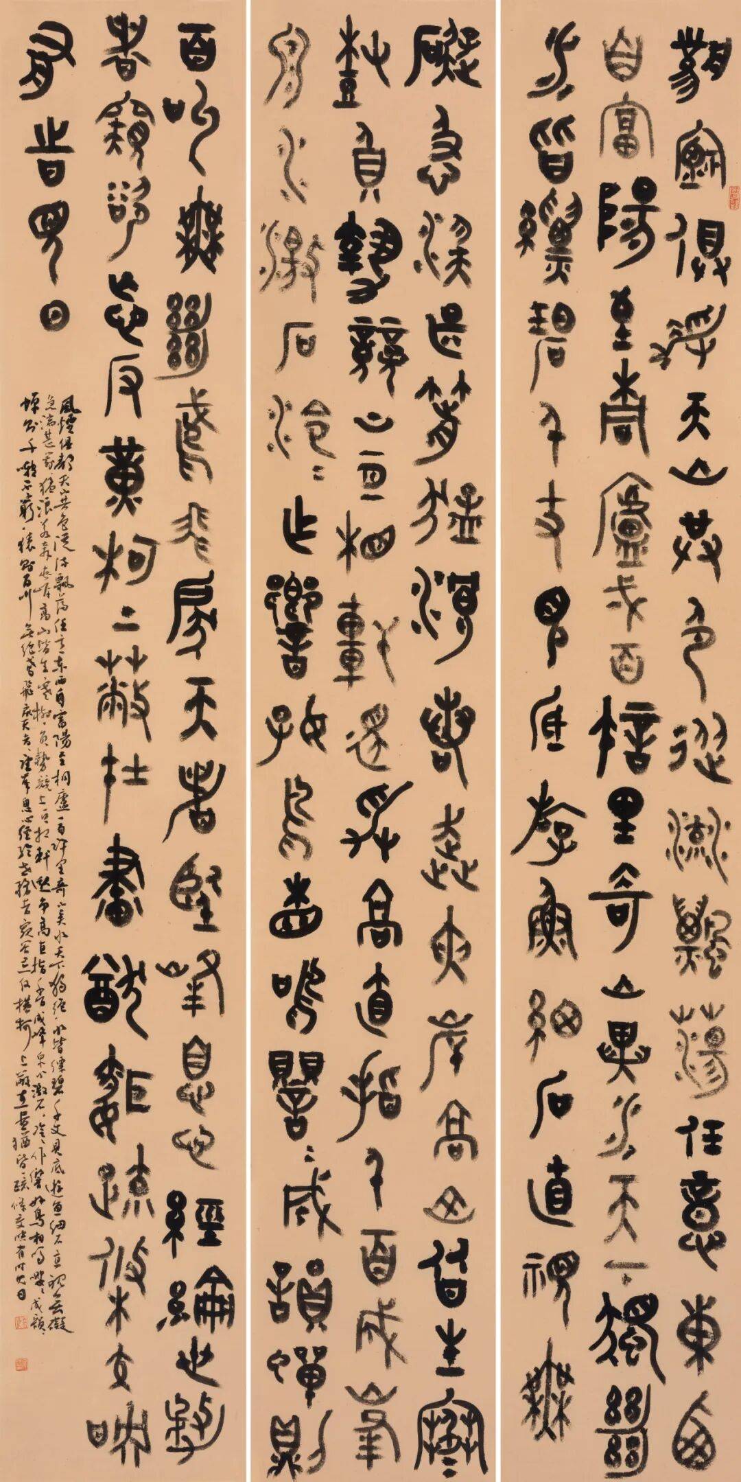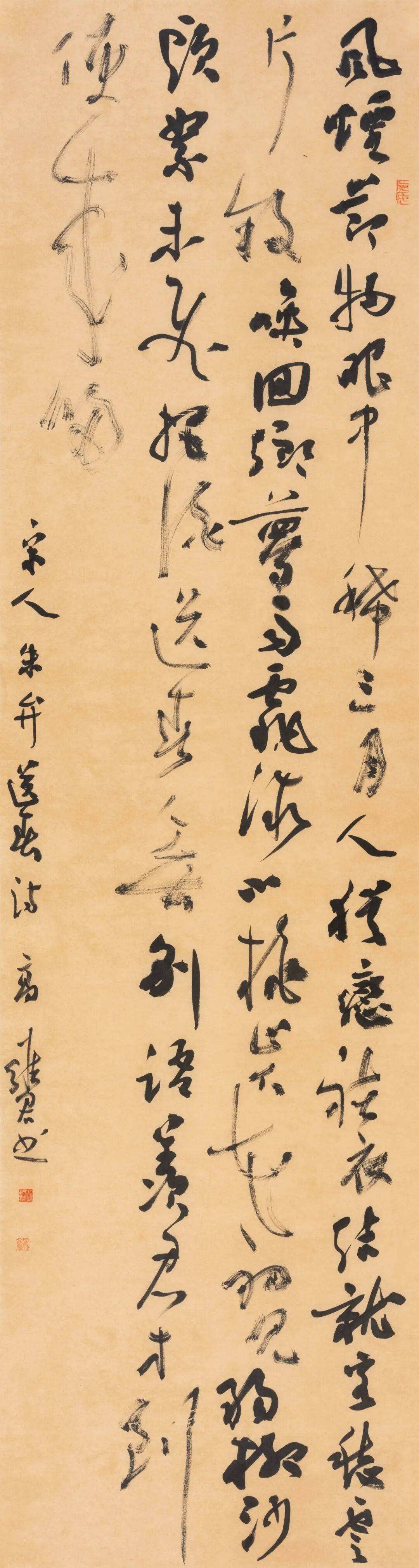 行之逾明则知之逾笃,行之逾笃,则知之益明。书法用笔,起于一点。虽形体细小,但须慎重从事,严肃下笔。晋卫夫人作《笔阵图》云:『点,如高峰坠石,磕磕然实如崩也。』故作点,须沉着而有重量感,灵活而不呆滞。此方为诗意的表达。非下笔实用力也。骨气形似,皆本于立意,而归于用笔。笔墨者,东方书法绘画神髓之所在。