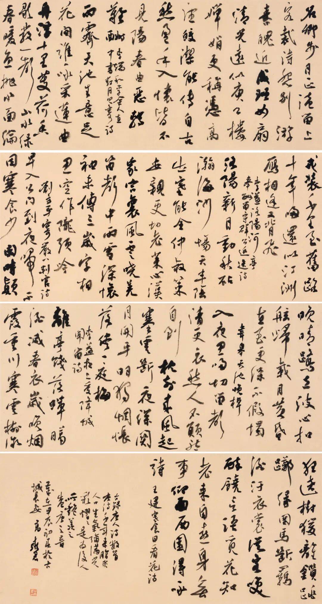 为学日益,是求手上的『外解放』。要在事上磨,方能动亦定,静亦定。外解放须为学日益的熟练,最深刻的美来自于有情的锤炼。在经典法帖中寻找技术上的多样性,表现笔墨情趣中节奏变化的丰富意蕴。