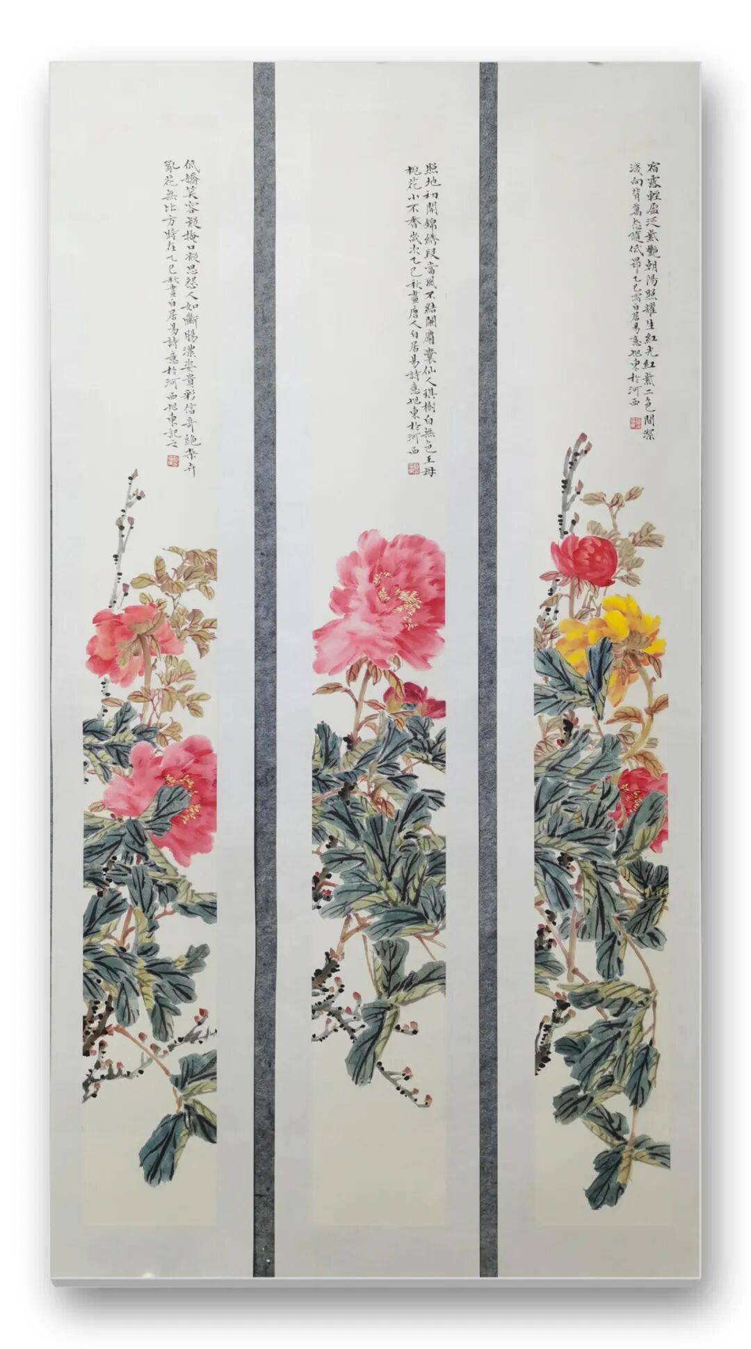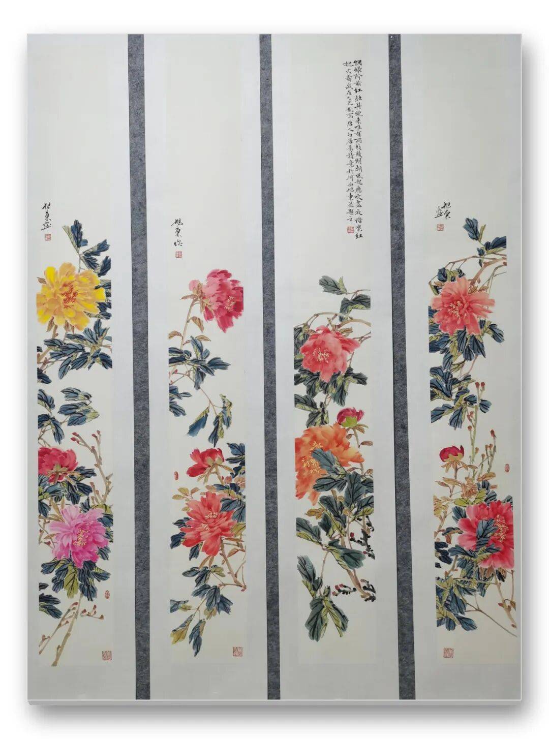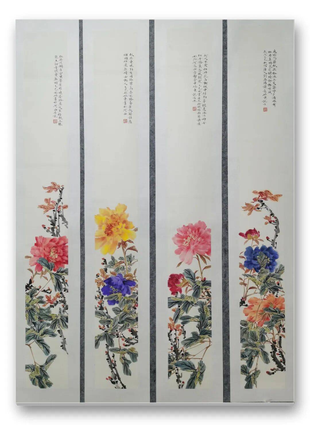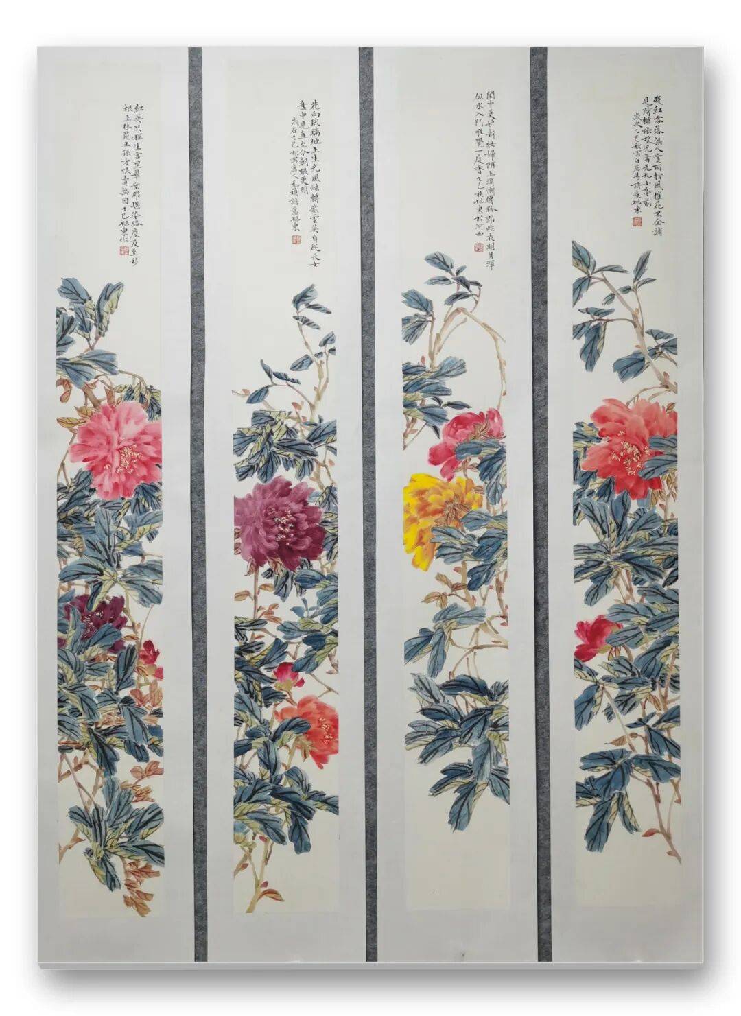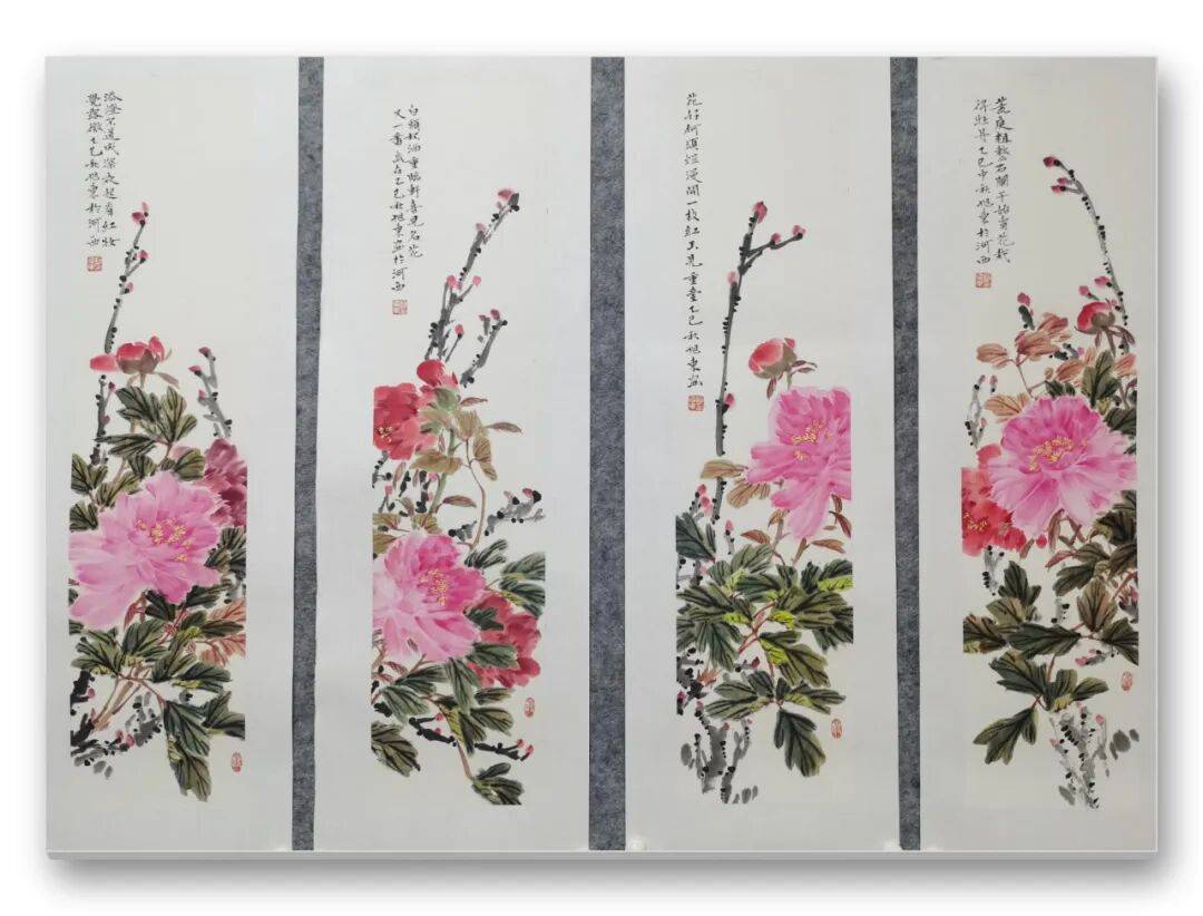 凑近细赏,更能发现先生画作的精妙。画中的花鸟仿佛被注入了灵魂,喜鹊在枝头翘首,似在期盼远方归人;蝴蝶在花间流连,似在追寻芬芳踪迹,一举一动皆充满生活意趣。每一根羽毛的纹理、每一片花瓣的脉络,都被刻画得入木三分,指尖似能触到羽毛的柔软,鼻尖似能嗅到花香的清甜。即便画幅宏大,先生也能驾驭得游刃有余,近景的细腻与远景的苍茫相得益彰,工笔的精致与写意的洒脱完美融合,山水、花鸟、生灵在纸上共生,构成一幅浑然天成的自然画卷。