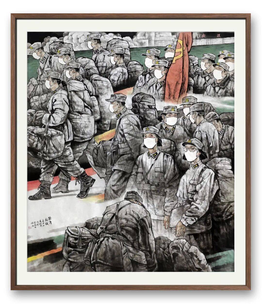 2021年6月,国画《紧急救援》参加庆祝中国共产党建党100周年山西省美术作品展