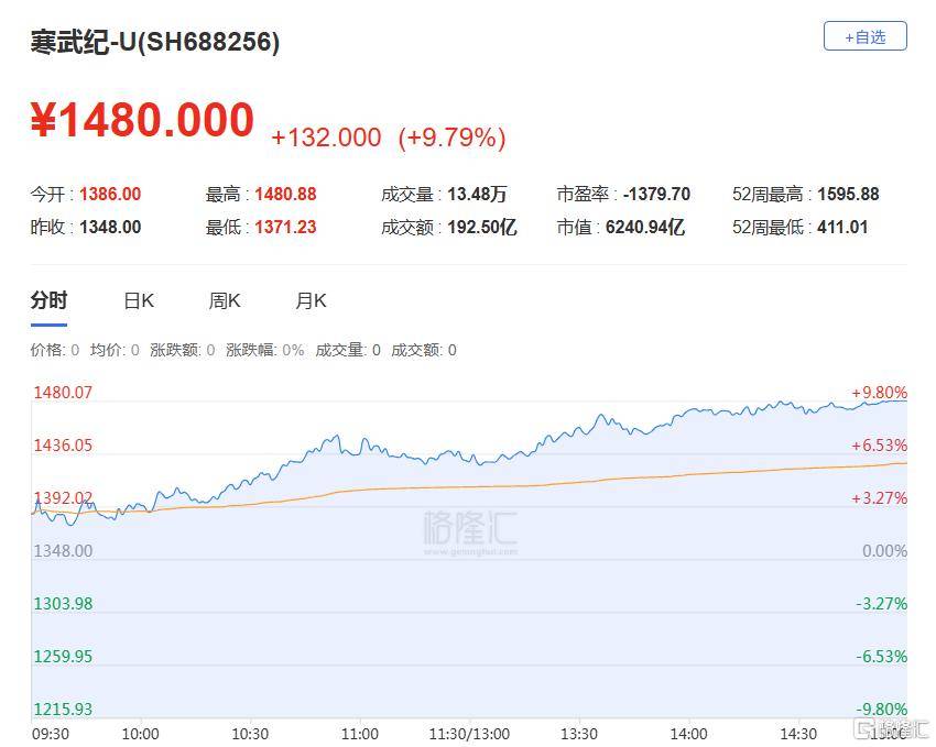 寒武纪-U收涨超9%, 股价再度超越贵州茅台,成为A股股价最高的个股。