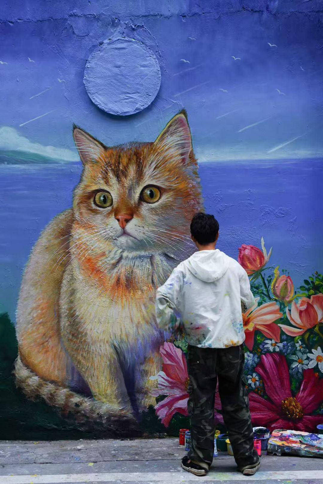 绵阳猫咪墙绘走红网络