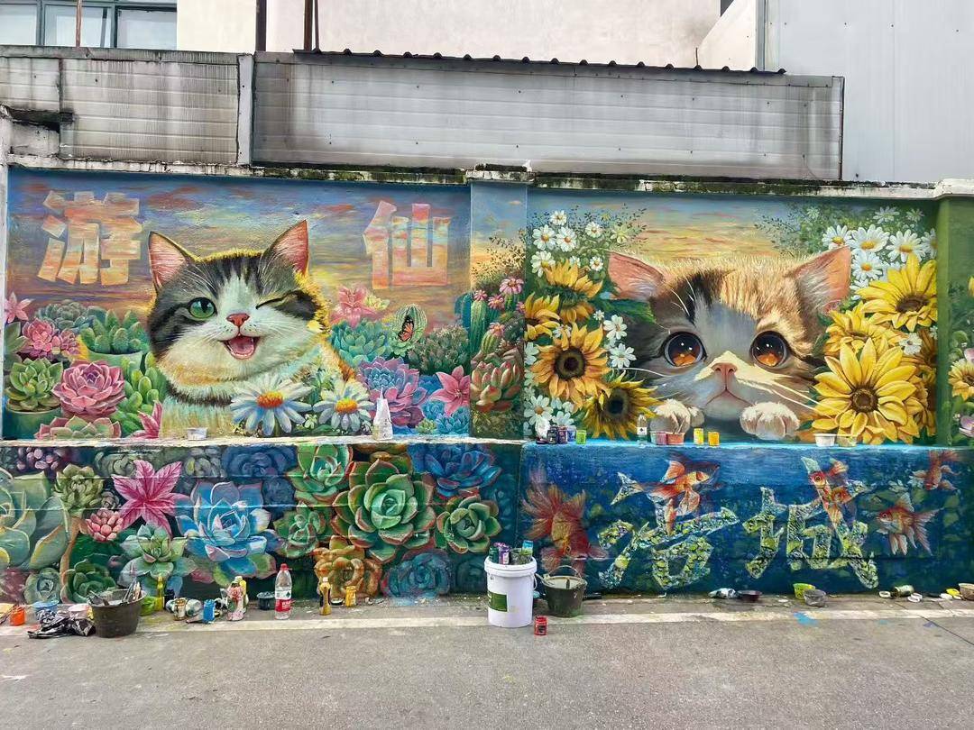 近日,一段“绵阳猫咪墙绘”走红。