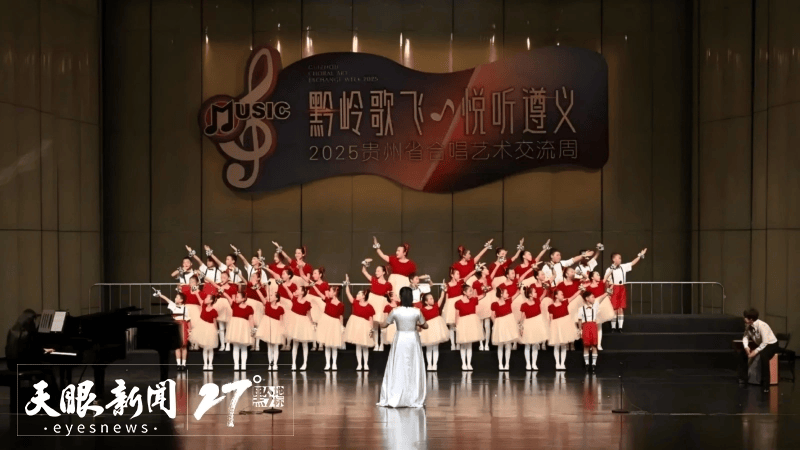 满山青绿染秋韵,转折之城奏乐章。11月1日至4日,“黔岭歌飞·悦听遵义”2025贵州省合唱艺术交流周在遵义举行。在为期4天的活动中,来自全省的65支优秀合唱团、3000余名合唱艺术爱好者,以深情的乐音和优美的旋律,讴歌时代,颂赞贵州。