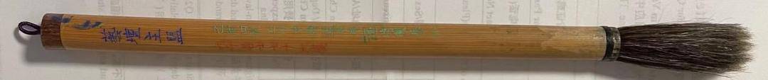 在这支毛笔之外,萧柔嘉还向四川博物院捐赠了一支2019年制作的“艺坛主盟”笔。原来,在2019年导演张伟民拍摄纪录片《万里千寻》时,去玉川堂寻找拍摄这段历史的时候,萧柔嘉委托张伟民又定制了同样的一支笔。玉川堂按照当年给到张大千定制时候的规格,也同样撰写了这样的落款。
