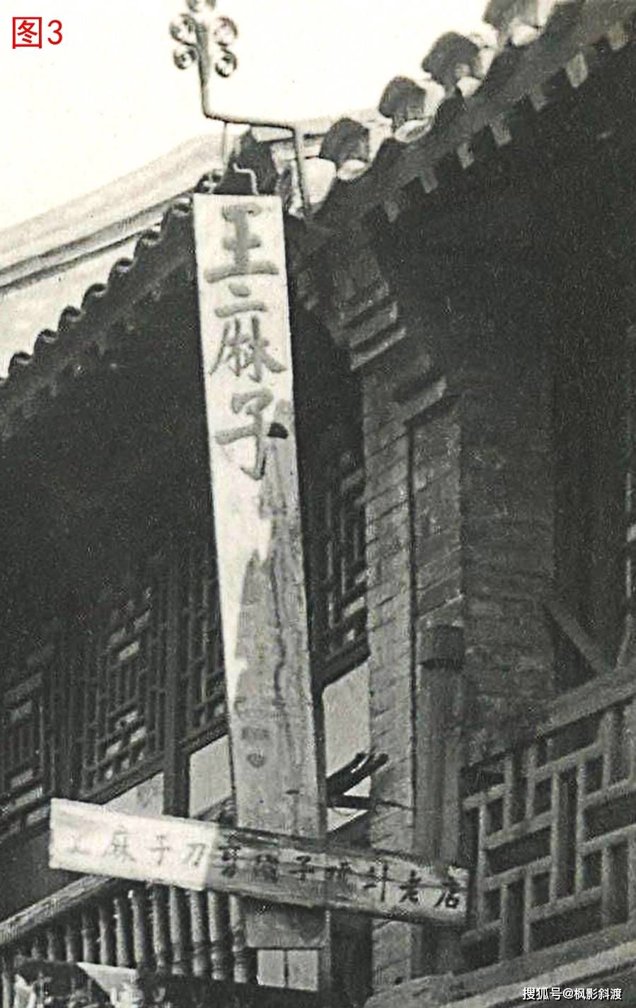 从北京的“箭楼”和胡同口的“过街楼”,可以确定为北京前门外珠宝市,大栅栏迆北(图2. 北京前门外局部地图。王麻子店铺位置大致在红圈处)。