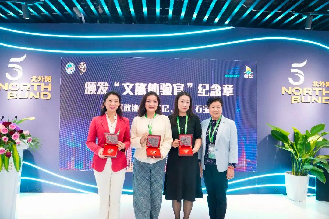 11月6日,“乐享北外滩、文旅新体验”——第八届中国国际进口博览会虹口区文旅企业专场推介会在国家会展中心虹口北外滩展区举行。虹口区政协党组书记、主席石宝珍出席推介会,并为上海北外滩国客中心景区、上海外滩茂悦大酒店、上海二道桥文化旅游有限责任公司三家单位颁发“文旅体验官”纪念章。