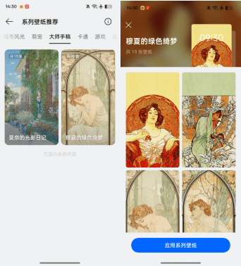 在内容深度上,乐划锁屏推出「大师手稿系列」壁纸,以“月刊”形式呈现艺术大师的经典作品,如“莫奈的光影日记”“穆夏的绿色绮梦”等。未来还将引入吴冠中、丰子恺、梵高等大师的作品,涵盖多种艺术风格,将手机锁屏打造成“轻量级流动艺术画廊”。