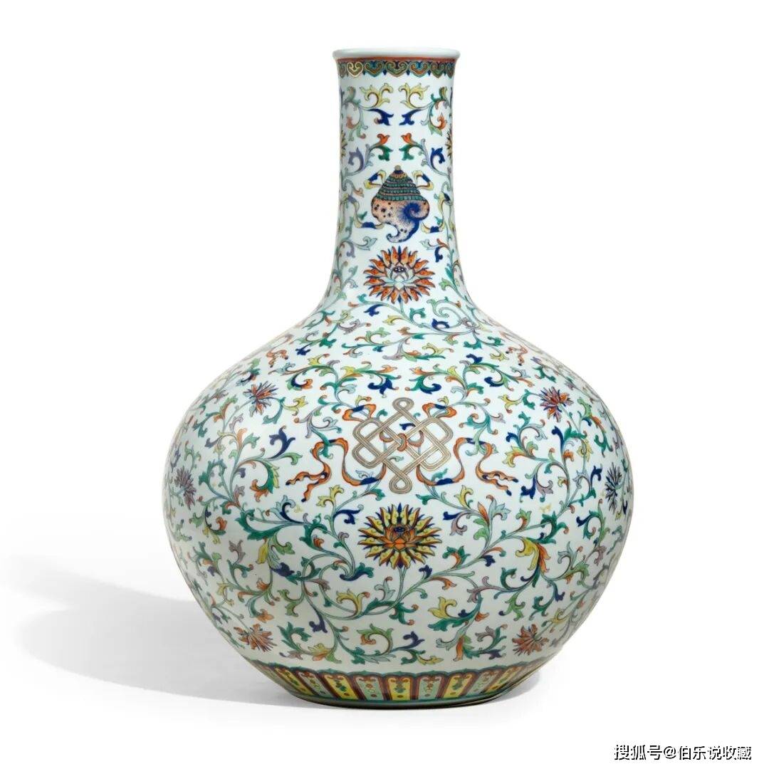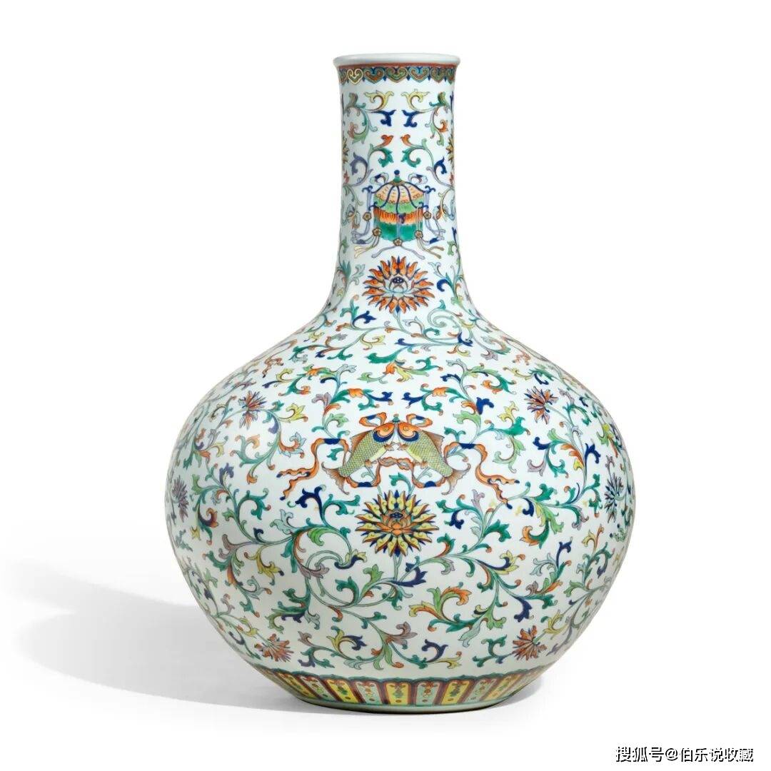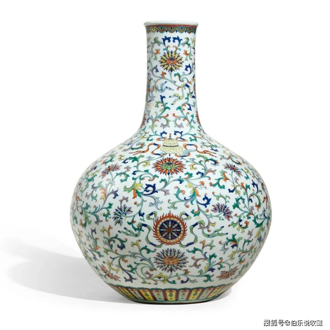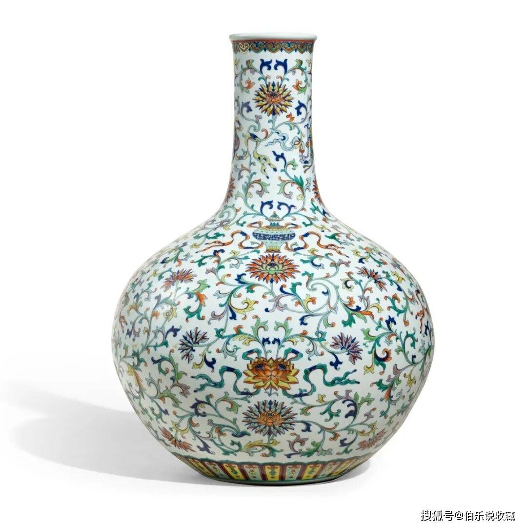 天球瓶器形肇始于明初,当时陶工开始尝试烧制大型器皿。虽说明早期已见佛教法物与莲纹结合的装饰,但烧造如此巨制,实需超凡技艺与精湛工法。细腻纹饰与宏伟器型的完美结合,令此瓶成为乾隆朝陶瓷艺术创造力与工艺成就的非凡见证。