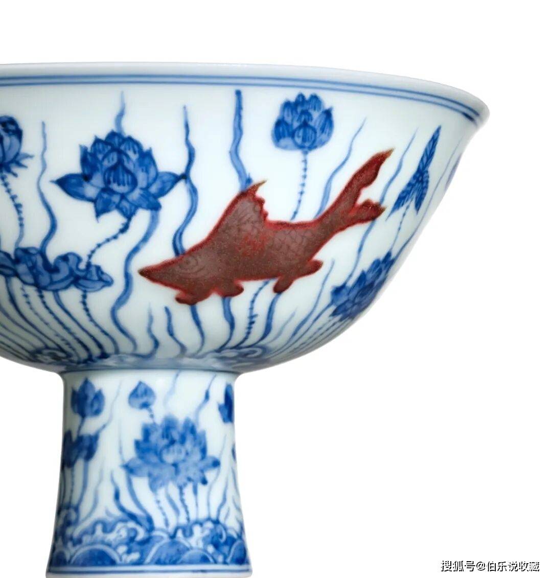 此般青红并置的珍罕工艺,其烧制难度令人望而却步。尤为特殊的是,碗上红鱼并非以铜红彩料绘于釉下,而是直接施以铜红釉这种一工艺的不稳定性使得成品率极低,即便御窑亦难把控,故本品虽具宫廷品质却未署年款,恰为时代特征之明证。