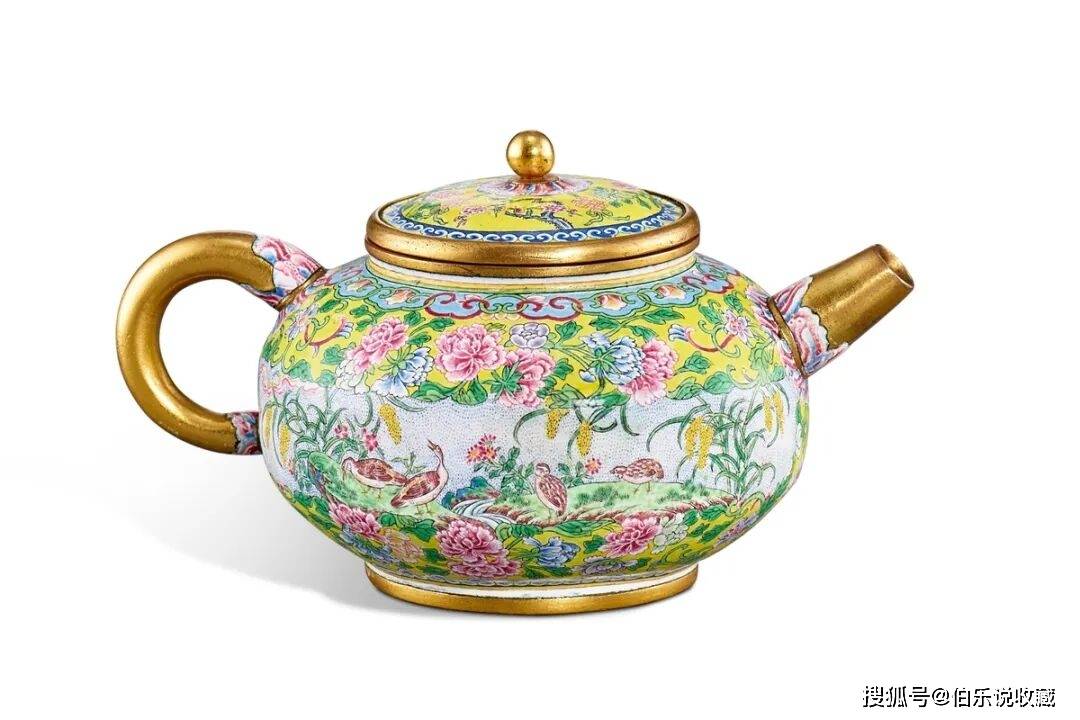 清雍正 御制铜胎画珐琅雁安图茶壶