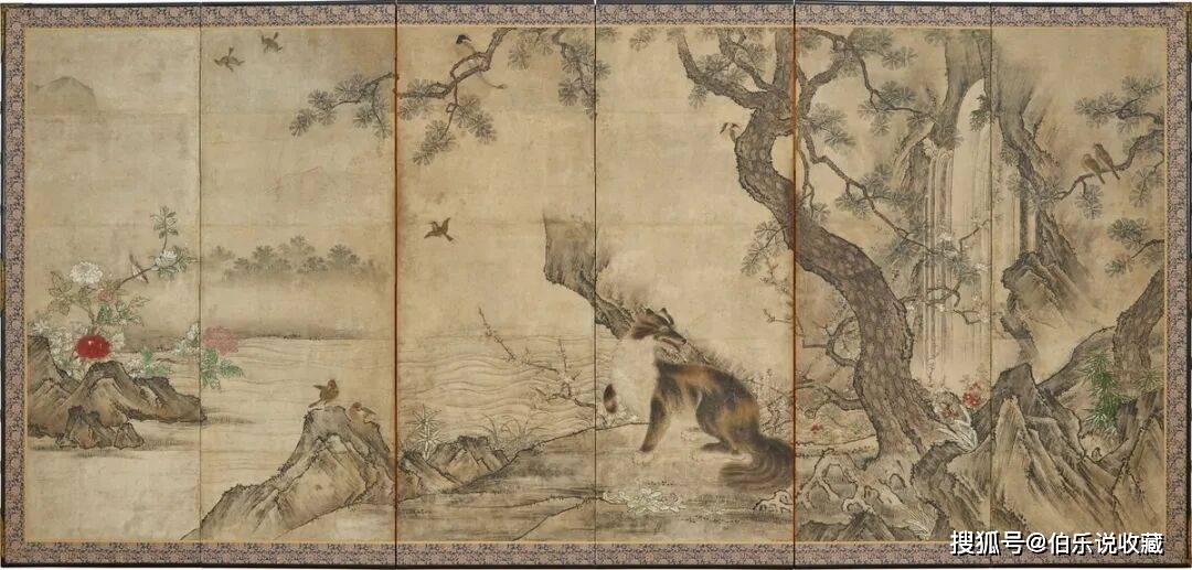 此对狩野元信六曲屏风乃日本室町时代十六世纪之巨作,亦为早期狩野派之正统典范。画家元信(1476-1559)承袭其父正信之志,不仅奠定狩野派之基业,更融汇中国水墨之雄浑与日本和风之细腻,开创独树一帜之集大成风格。