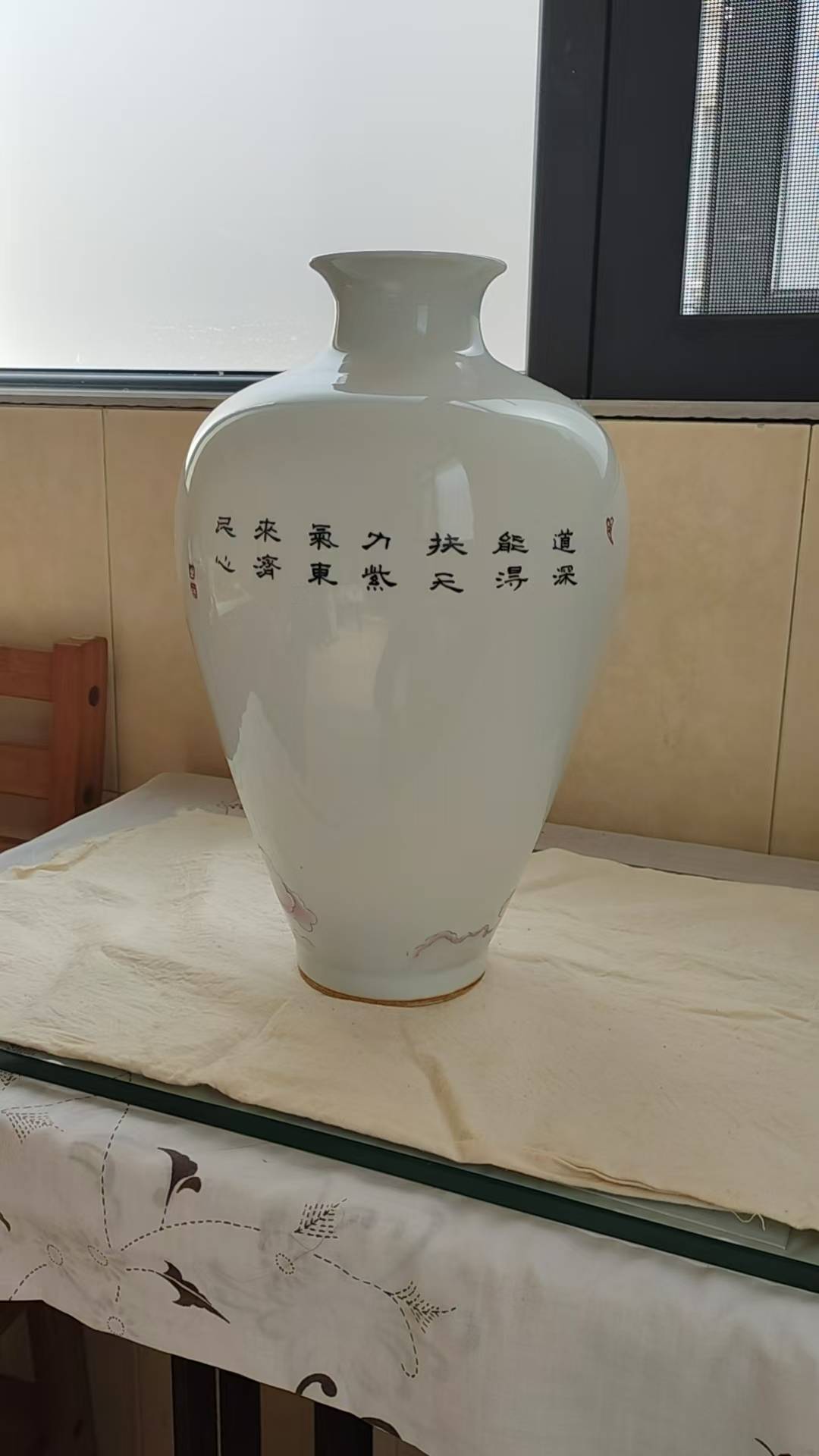 从工艺角度看,梅瓶的成型难度颇高,尤其是腹部与底足的衔接处,需经多次修坯方能保证器型周正。这件器物胎质细腻洁白,胎体厚薄均匀,可见当时制瓷工匠对泥料把控与成型工艺的娴熟程度,是民国时期制瓷技艺的直观体现。
