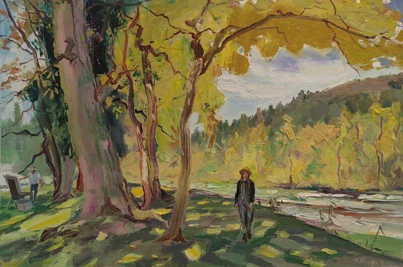袁文彬《秋日树林》 (伊宁市融媒体中心供图)
