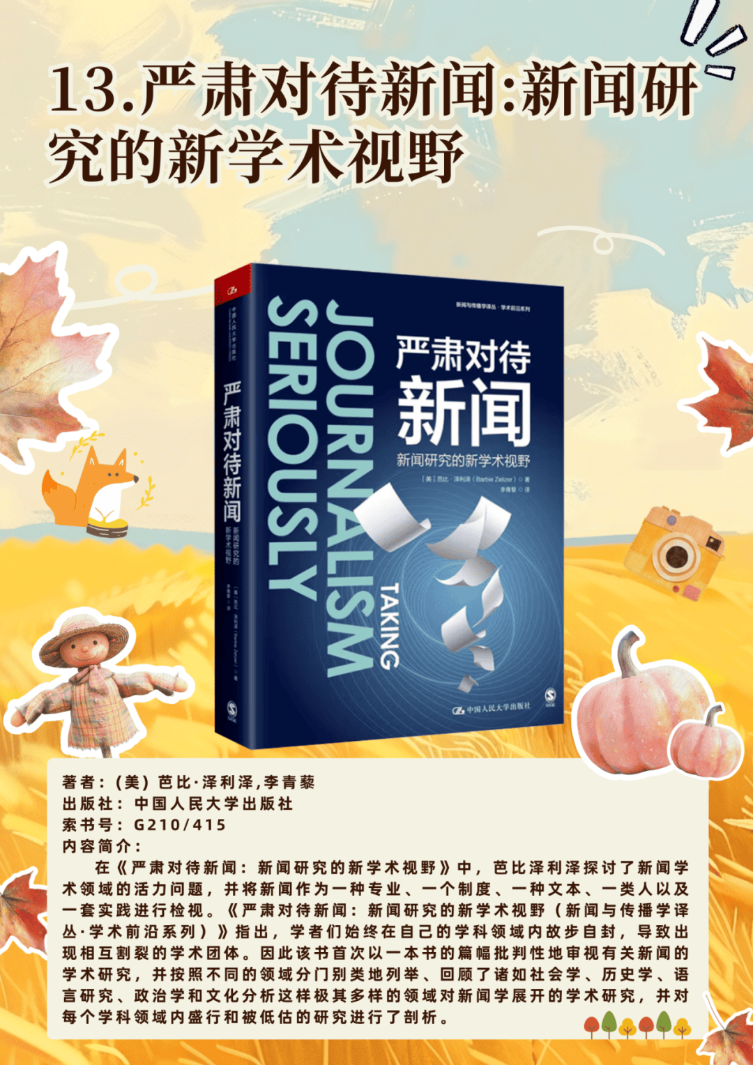 13.严肃对待新闻:新闻研究的新学术视野——(美) 芭比·泽利泽,李青藜