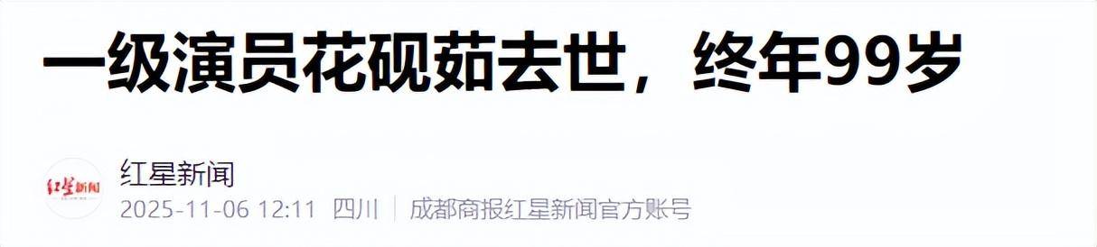 红星新闻《一级演员花砚茹去世,终年99岁》