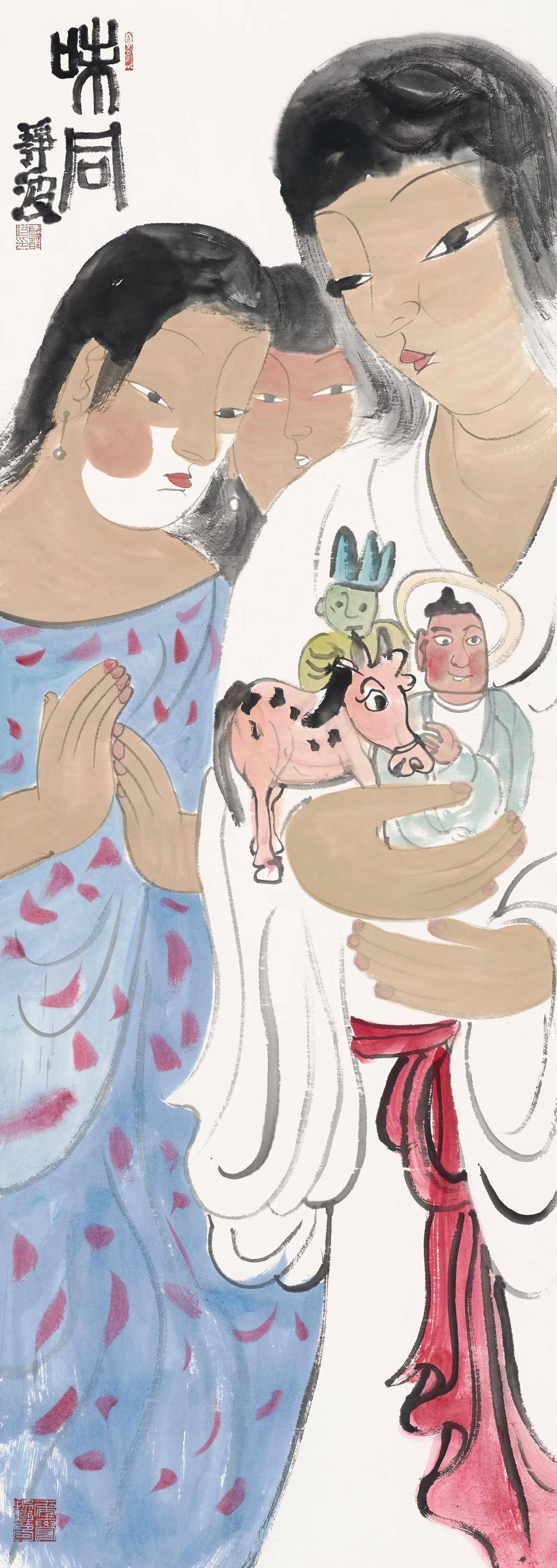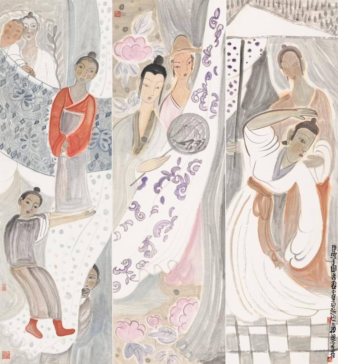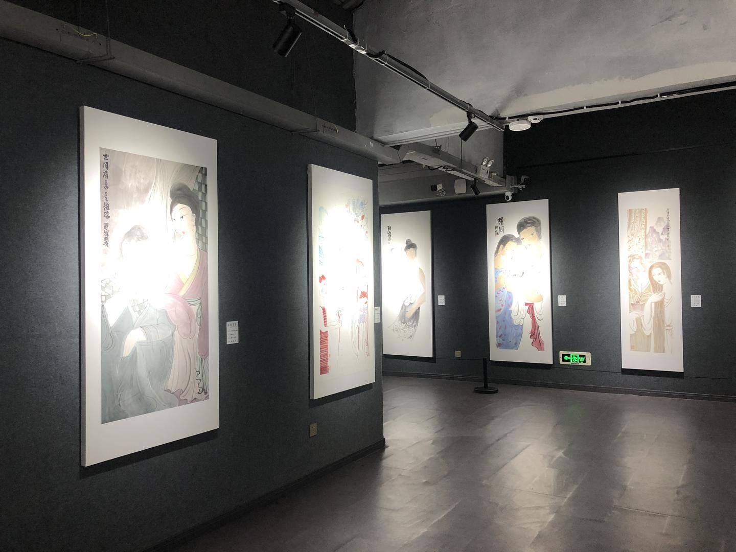 段静波告诉记者,这批画作是从自己300多张近作中精心挑选出来的,确实从她很喜欢的敦煌石窟艺术中汲取了美学元素。“同时也加入了我自己在生活中的感悟和心得。”她说,“既有传统也有现代,可以说是把我这些年来读过的书、看过的展、写过的书法、练过的篆刻等,渐渐吸收融汇之后,再倾注于画面上。”