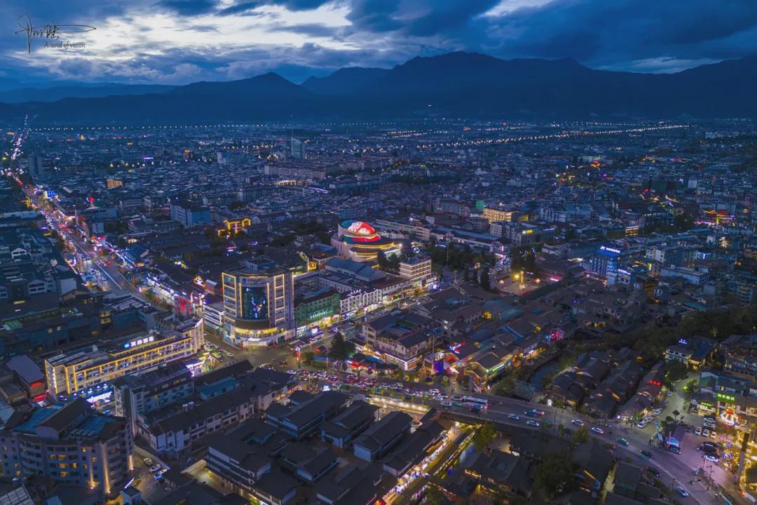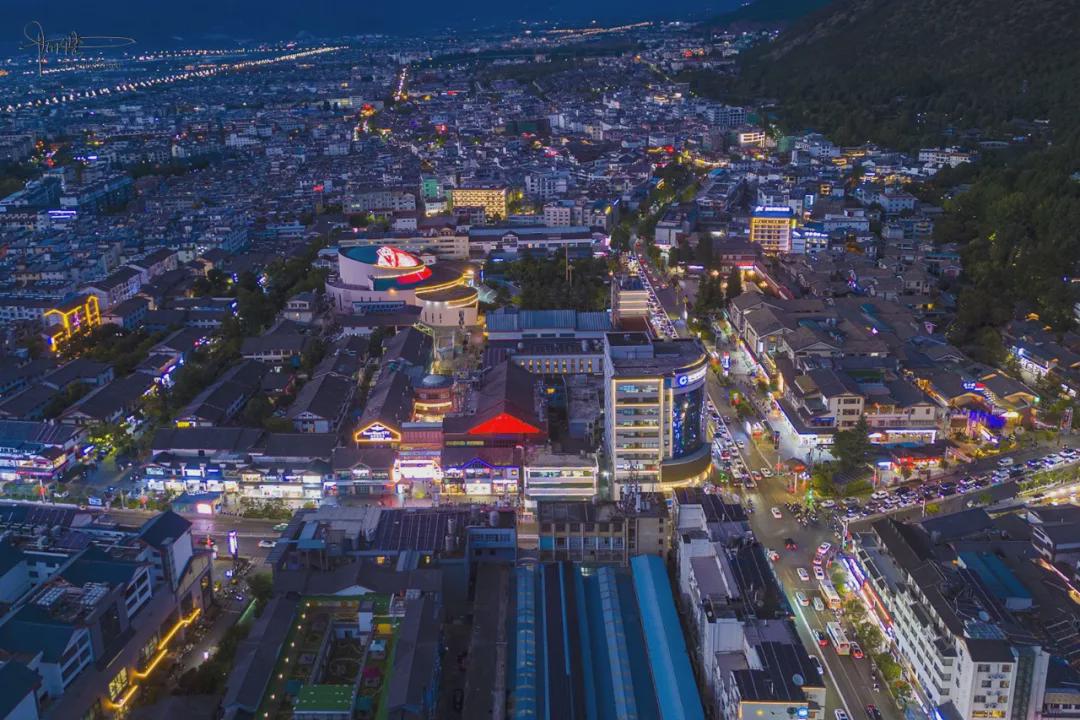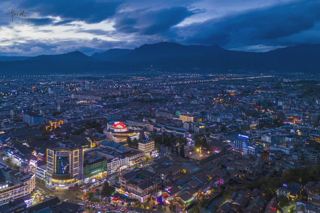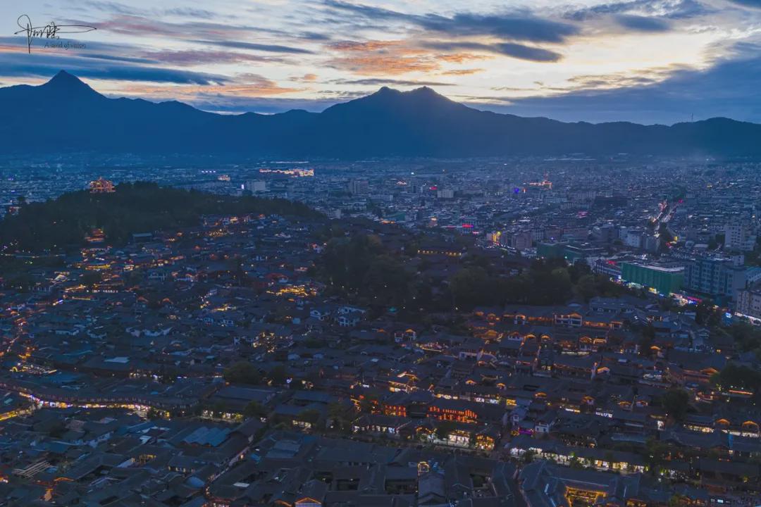 在丽江这几天有点“自我摆烂”,尤其碰到阴雨天气后,更是整天缩在民宿里玩电脑、手机,吃外卖和睡懒觉。有趣的是某天被民宿老板提醒晚霞不错,才兴冲冲抱着无人机跑到外边的巷子里放飞,哈哈,风景果然马马虎虎,于是一直拍到天黑。而这时却发现一颗“明珠”在丽江夜色中频繁闪耀,那不断变幻的色彩图案,着实有点璀璨夺目。