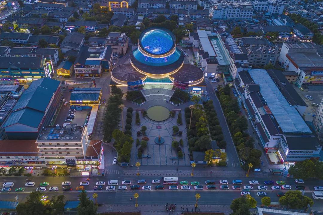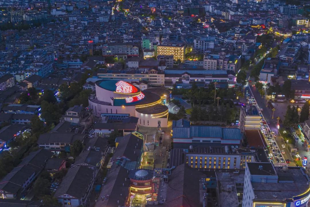 遥控小飞机在信号不佳的情况下(四周都是民宿民居,可谓小楼林立),总算勉勉强强抵达它的上空,这时才从地图上得知,原来眼前的建筑就是大名鼎鼎的“丽江国际民族文化交流中心”。