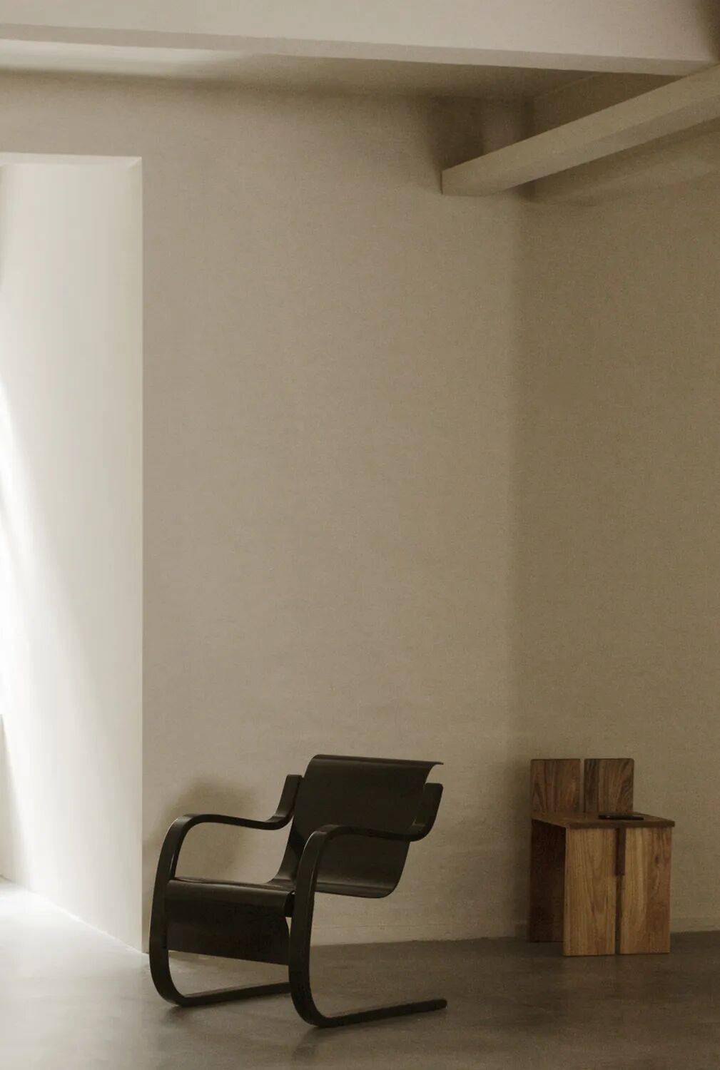 P1:Alvar Aalto,《Armchair 42 – Black Lacquer》/座高36,宽60,深75,靠背高72cm /框架:弯曲成型实心桦木片层,座壳:模压桦木胶合板 /1932©Ark Kollekt