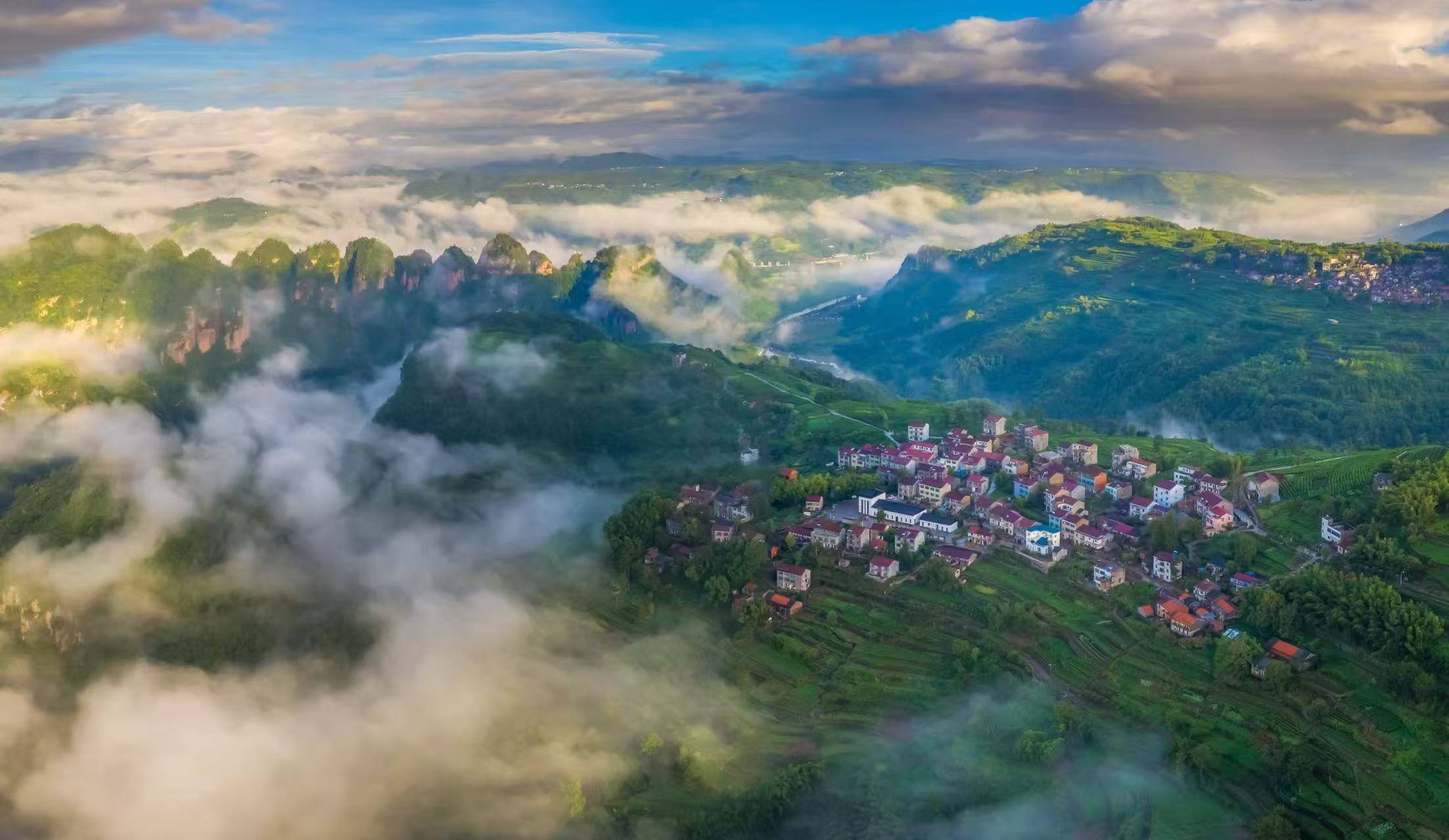 为真实构建“茶山乌托邦”的影像语境,制作团队历经多轮实地勘景,最终选定下岩贝·金山上片区作为故事主场。该片区坐落于新昌县东茗乡西南,与十九峰景区隔江相望,串联下岩贝、金山、后岱山三村,是观云海、游茶乡、听戏品韵、栖居山野的理想之地。近年来,新昌县文旅集团以“出凡尘·入慢乡”为片区发展理念,持续打造自然与人文交融的慢生活示范区,云峰十二重、参差咖啡博物馆、悬崖酒店等多元业态渐次落地,使这里成为越来越多人疗愈身心、安放情绪的向往之地。