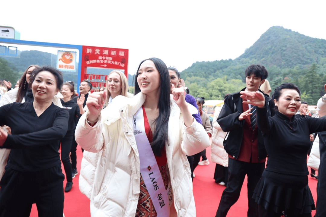 佳丽们首先在黔灵湖畔拍摄集体大合照,湖山相映,人景交融。随后,她们加入市民广场舞队伍,随着欢快节奏舞动身影,引来阵阵掌声与欢笑。