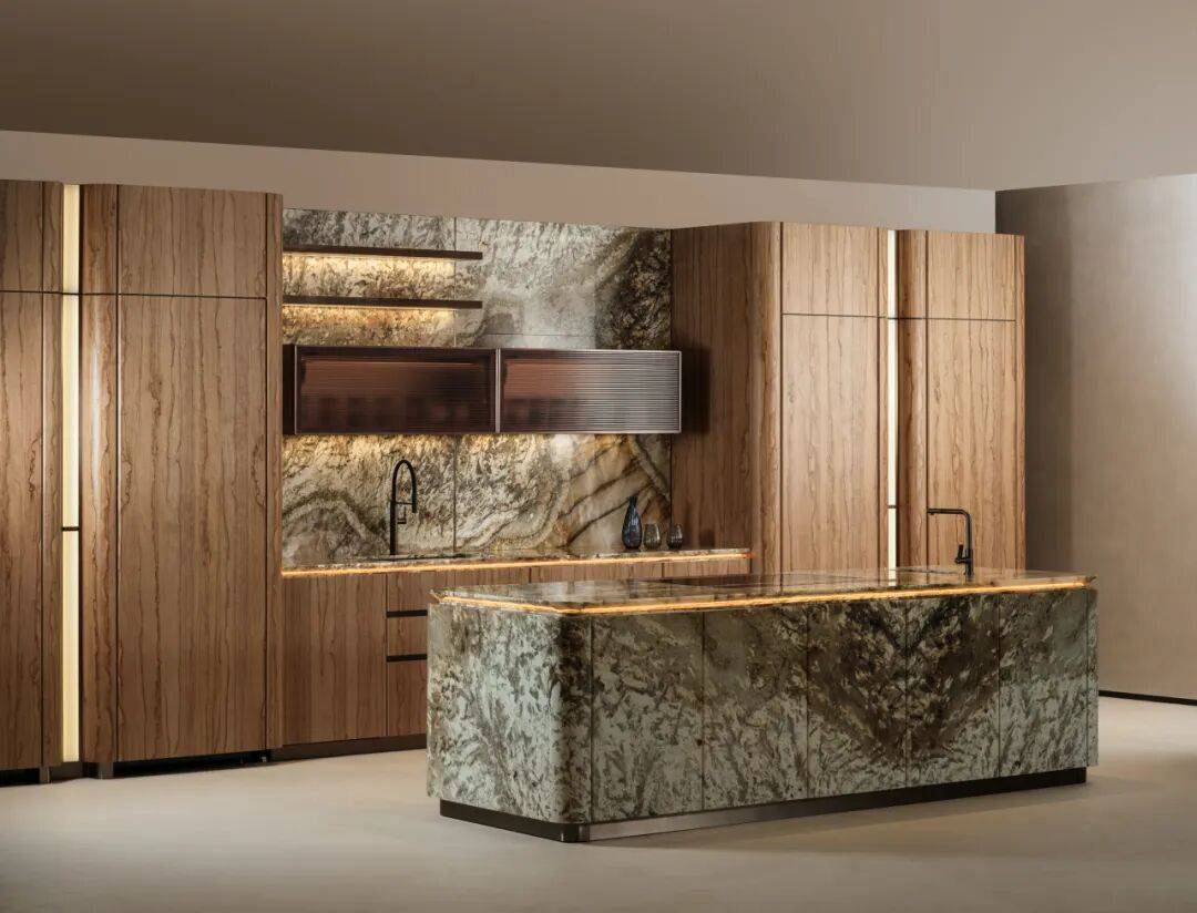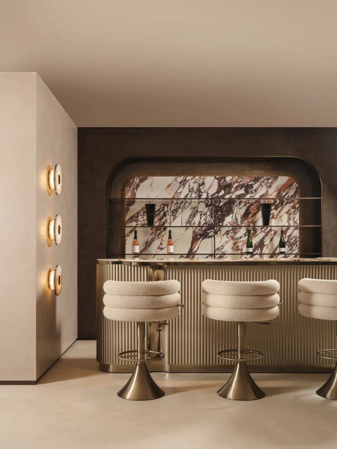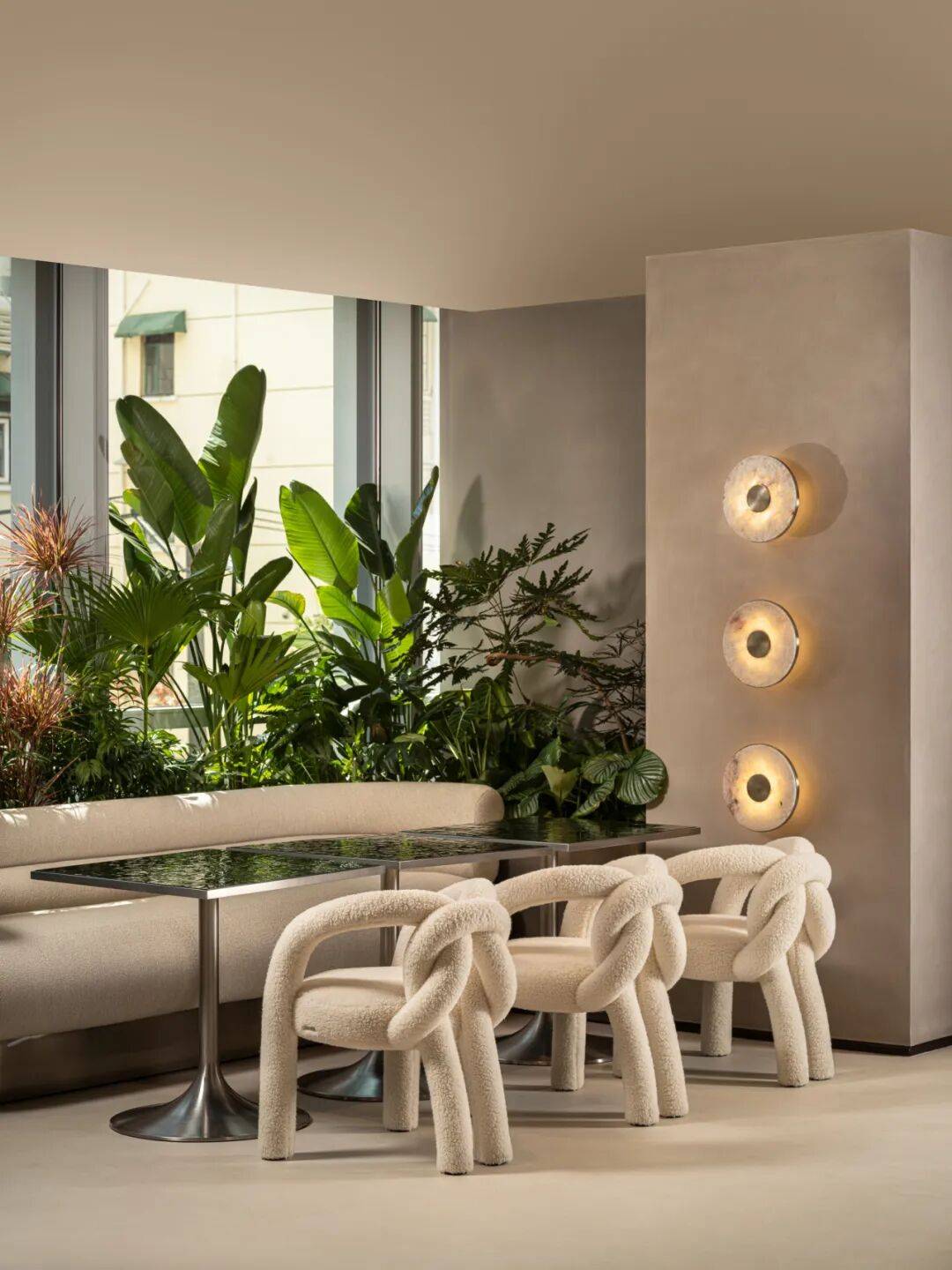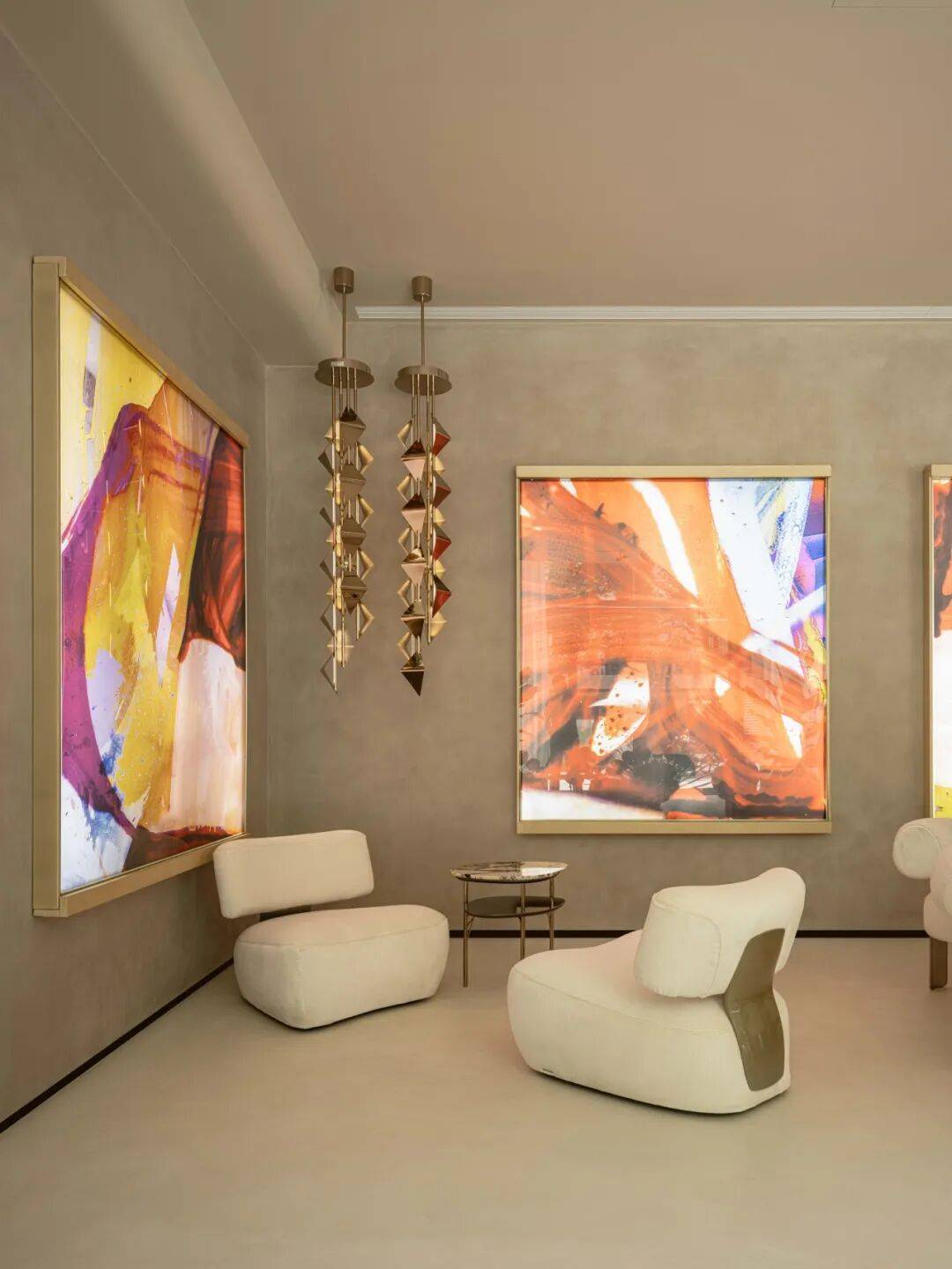 一楼营造出一种博物馆般的艺术氛围。为了庆祝开业,Visionnaire将一些品牌标志性的艺术杰作从米兰搬来上海,Marc Ange设计的,形似孔雀的Pavone椅、Draga&Aurel设计的Elysium艺术桌、Zoe Deco椅与Aurel的墙面艺术品形成对话,沉浸式场景再度强化了Visionnaire将设计转化为文化和叙事体验的品牌理念。第二层呈现了完整的家庭起居空间,包括客厅、餐厅等区域,三层则为厨房、酒吧以及沙龙活动场地预留了空间,展现了品牌的精致优雅与国际视野。