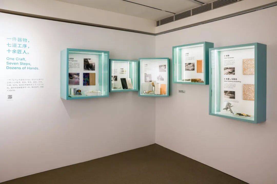 工艺展区以“从碎片到奇珍”“刻下日久流光”“时间的层浪”三幕空间叙事展开。蛋壳漆以宋代开片瓷为灵感,展现温润如玉的细腻肌理;竹丝镶嵌复原清宫技艺的精微秩序,于毫米之间成就秩序与雅致;犀皮漆重现千年漆艺的层叠深邃,在反复髹涂与磨显中凝结时间与匠心的温度。构筑起一条从传统匠艺的源起到新生的叙事线索,观众在行走之间,可近距离探索手工艺从时光中延展出的独特质感。
