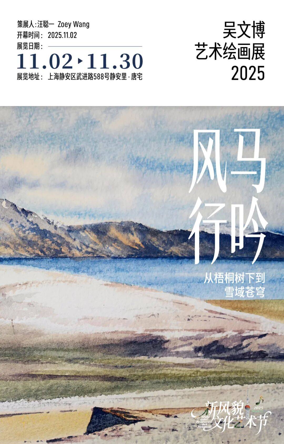 著名建筑师、艺术家吴文博个人艺术绘画展“风马行吟—从梧桐树下到雪域苍穹”在百年历史建筑静安里·唐宅东楼正式开幕,展览集中呈现了艺术家在四川、云南、西藏、青海、甘肃等地实地创作的系列水彩作品。它们不再是遥望的风景,而是以身“行”之、以心“吟”之后的情感凝结。以建筑师独有的空间洞察力,解构山峦的秩序与河流的脉络、又以水彩特有的通透与灵动,捕捉高原的光晕与风的速度。