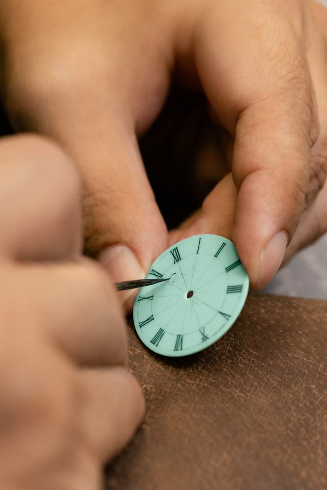 议员梅森腕表的瓷表盘极为纤薄,厚度仅0.8毫米,历经12至15道全手工工序:900℃素烧、由造型大师修坯打磨、涂覆透明玻璃釉(或再叠加青瓷釉)、再经1400℃高温釉烧……每一步都是“零容错”的考验,以确保梅森瓷表盘的耐用性、光泽度和色彩淳厚。在瓷表盘釉烧完成后,梅森顶尖瓷绘大师以松鼠尾毫软毛画笔与定制硬笔,蘸取梅森瓷窑独特的自制氧化矿物色料,罗马数字和品牌标识的弧度、洛可可纹的卷舒、动物与水果花卉元素——每一笔都需一气呵成。罗马数字时标由一位执笔40余载的绘画大师担当,纹饰与艺术装饰则由两位拥有20余年从业经验的资深画师共同打造,每一枚表盘都是独一无二的艺术品。