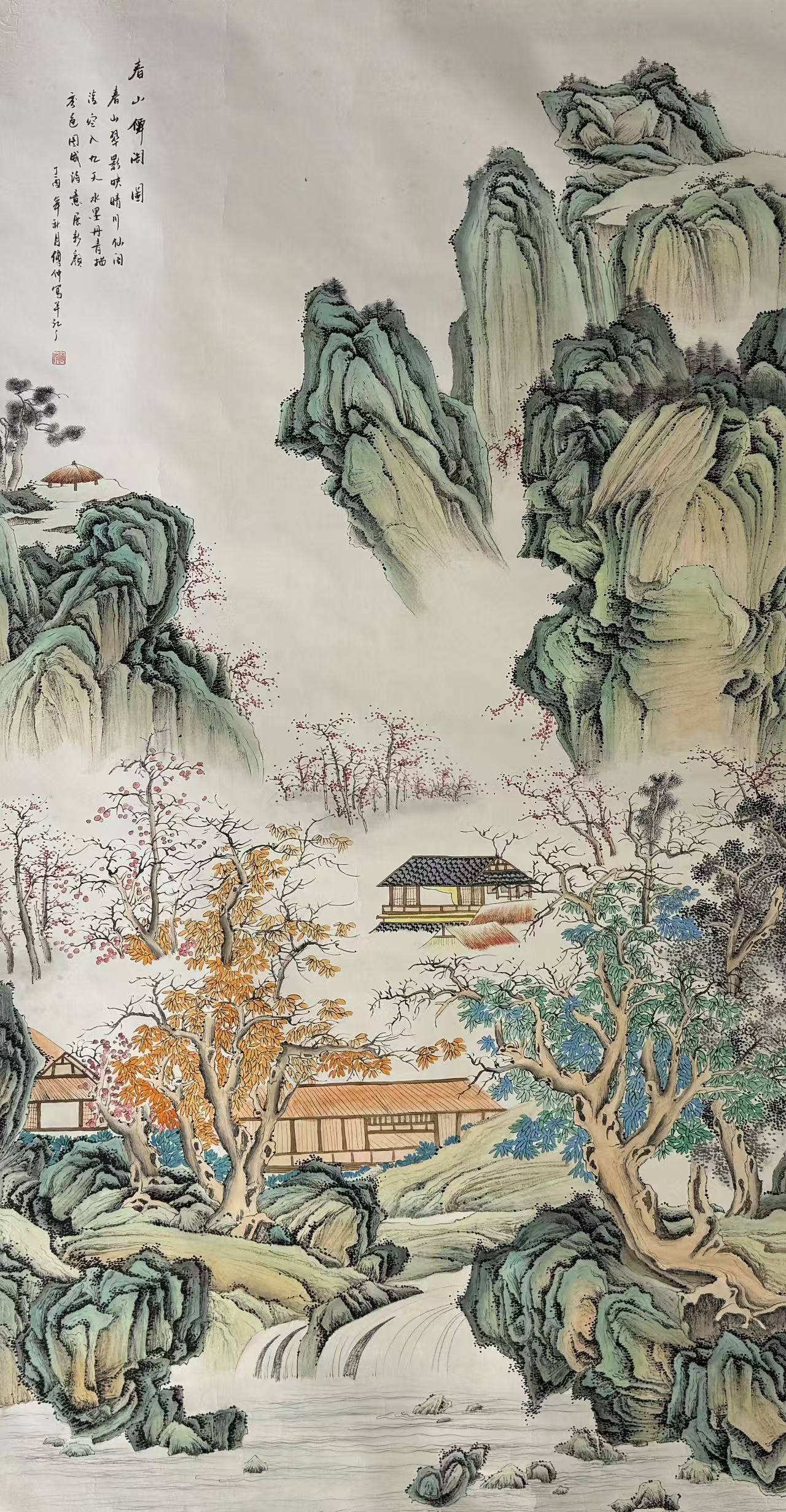 春山偶阁图 180x100cm