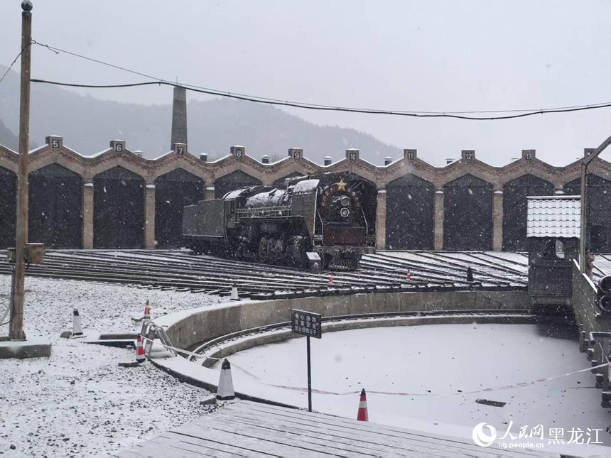 人民网牡丹江11月8日电 11月8日,黑龙江省海林市横道河子镇迎来降雪,雪花簌簌飘落,将这座百年铁路小镇装点成银装素裹的童话世界。俄式老建筑披上白色外衣,中东铁路博物馆的蒸汽机车头也覆盖着厚厚的积雪,与飘落的雪花共同构成一幅冬日图景。