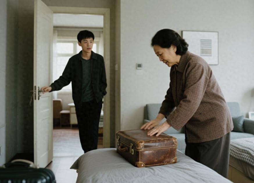 "妈,行李收好了吗?明天一早的飞机。"儿子张建军推门进来,看见她在整理那只陪伴了三十年的旧皮箱。