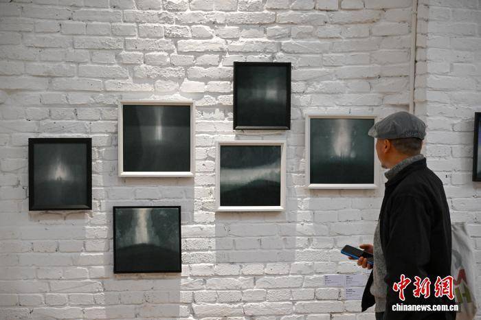11月8日,展品《轻视了清晨》吸引观众。当日,“柔韧的边界 —— 薛滔个展” 在云南省昆明市开展。薛滔以扎染技艺为基础,利用材料柔韧特质,让时间、思想显色。中新社记者 李嘉娴 摄