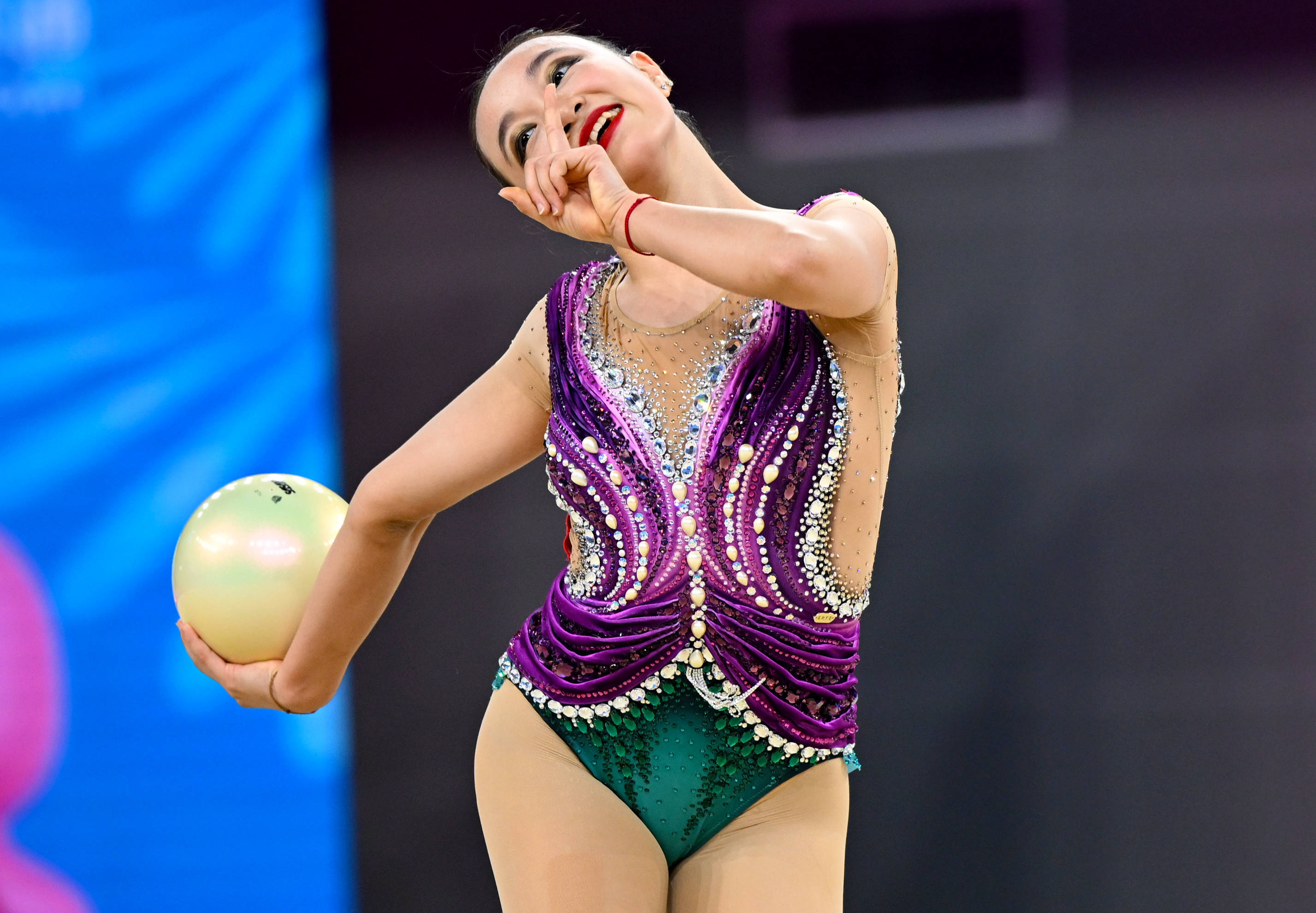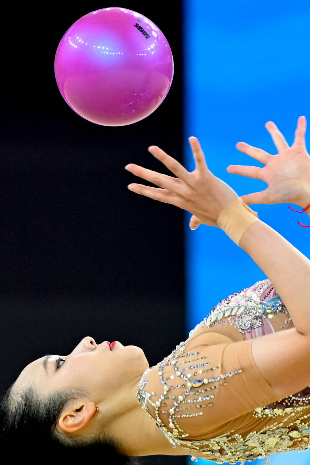 11月8日,四川队选手王籽涵在球操比赛中。 新华社记者 郝源 摄