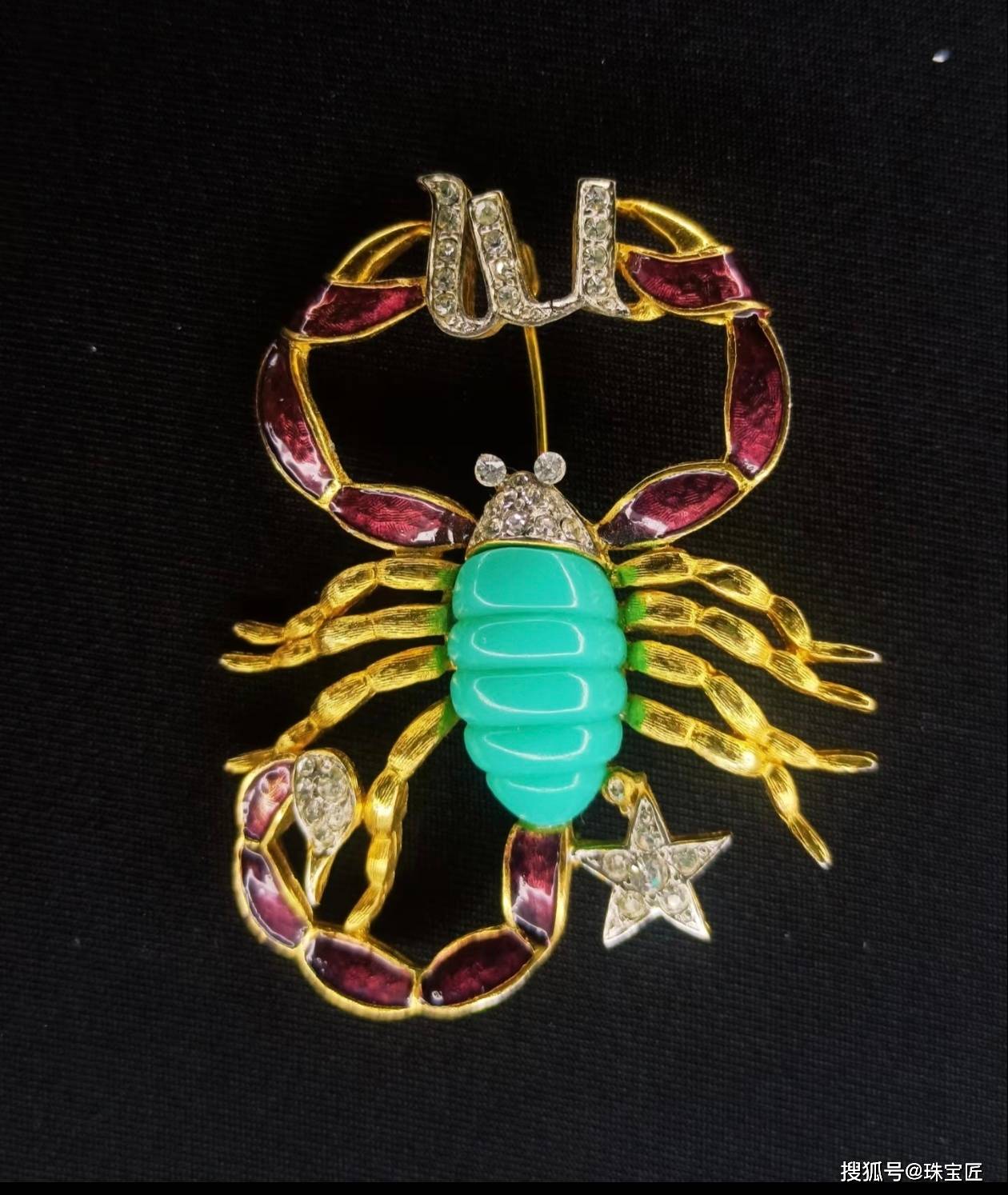 若论最奢华的天蝎座作品,当属梵克雅宝以黄道十二星座为灵感所打造的“幸运之星”系列。其中一款天蝎造型胸针,采用白金镶嵌钻石、蓝宝石、尖晶石及欧泊等多种宝石,延续了品牌在天蝎座珠宝中一贯的蓝色调审美,更通过宝石的巧妙组合,营造出令人惊艳的视觉盛宴。