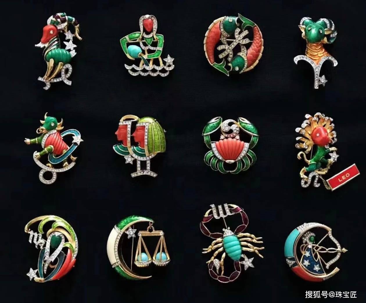 Jerry DeNicola 于 1957 年创立的同名珠宝品牌DENICOLA的星座胸针更是上个世纪的大热收藏款。独特的造型与丰富的材质使得每一只胸针都兼具艺术感与辨识度,既还原了星座的神秘氛围,又透着复古时尚的巧思。