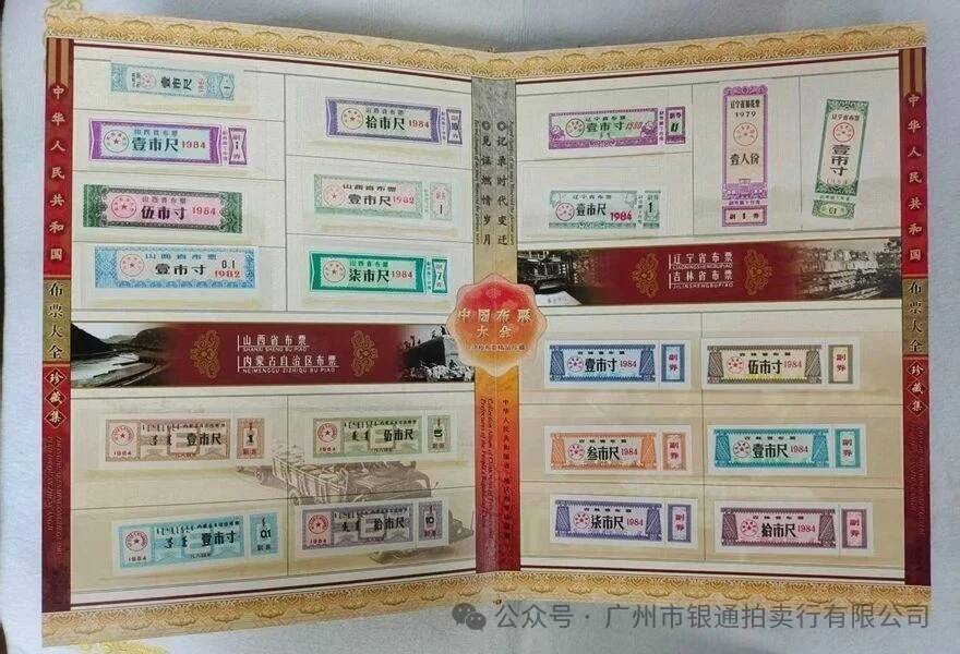 这套《中国布票粮票大全》共368枚,珍藏册装帧精美,票证版式丰富多样,图案涵盖各地建筑、工农业生产场景等,票面文字清晰可辨。整体布局科学有序,便于鉴赏不同时期、不同地域票证的细节差异,是计划经济时代物资分配史的立体缩影。票证色彩丰富,布票多采用红、绿、蓝等明快色调,粮票则以棕、黄、灰等复古色调为主,色彩层次鲜明且富有时代特征,生动展现了计划经济时期票证印刷的色彩风格。该大全集收录的 368 枚票证,是中国计划经济时代物资分配制度的实物见证。票证的图案设计、文字版式不仅反映了当时的社会经济风貌,也体现了特定历史时期的印刷工艺水平,对于研究中国当代经济史、票证文化的演变以及收藏市场的发展脉络,具有极高的系统性与历史价值,是票证收藏领域极具分量的实物资料。