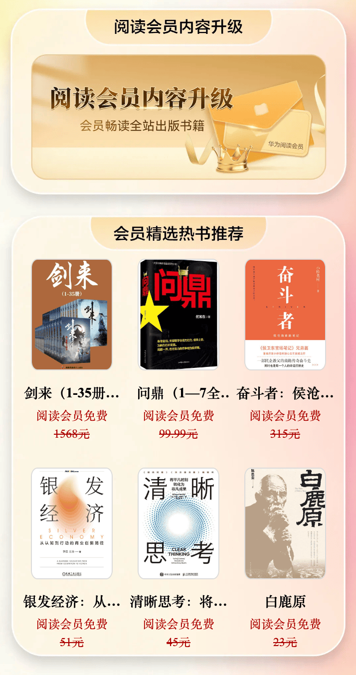 华为阅读VIP会员畅读百余家出版机构优质书籍