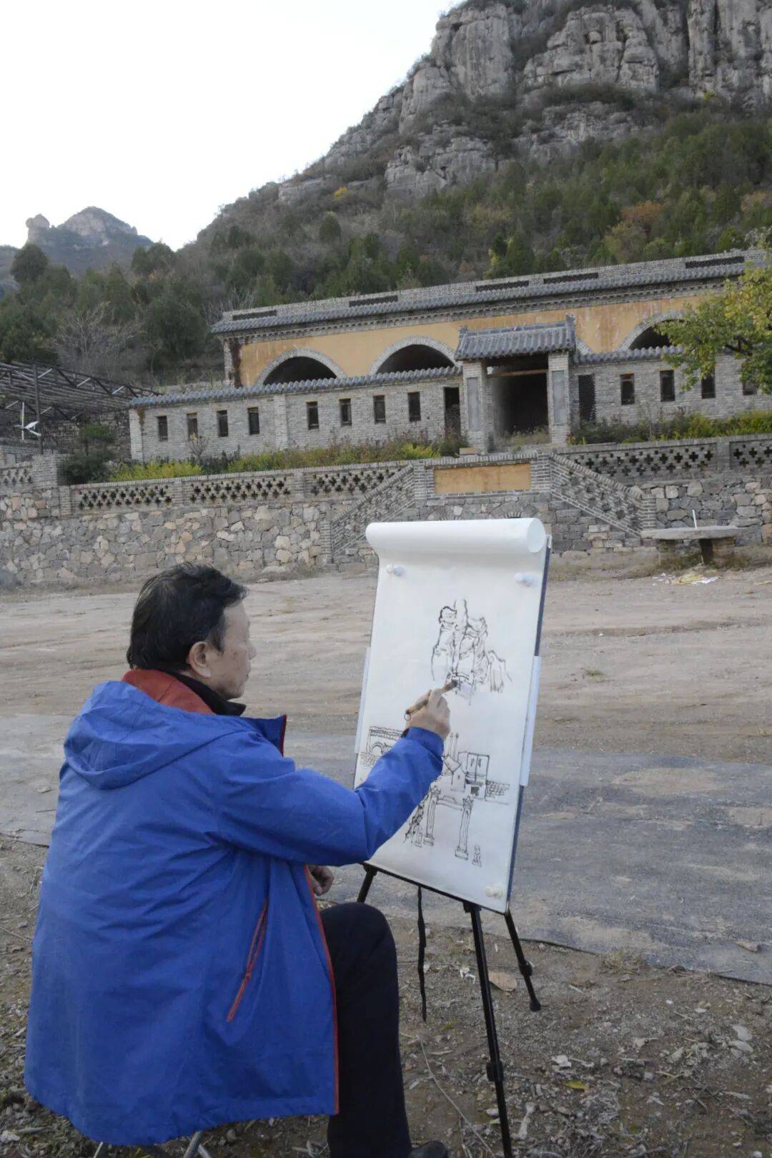 10月16日,大家驱车来到涉县美丽乡村立邱村写生,张培武导师给学员示范写生。