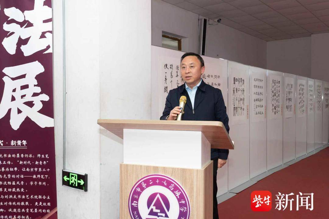 翰墨飘香歌盛事,丹青流彩写华章。11月10日,南京市第二十七高级中学体育馆内墨香四溢,“新时代·新青年”师生书法展览交流活动隆重启幕。领导嘉宾莅临现场,著名书法教育家、南京刘洪友书法艺术院院长刘洪友亲临现场,与二十七高书法班师生亲切交流。