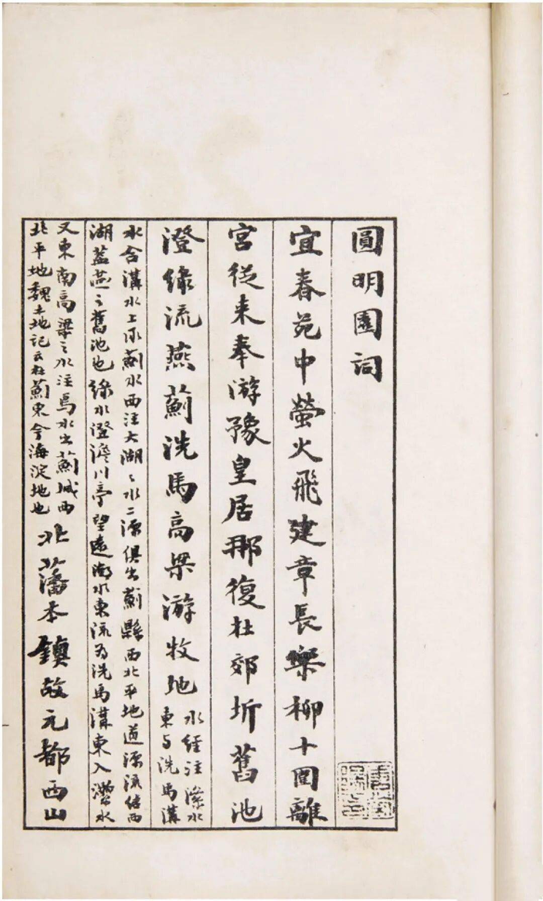 圆明园也是雍正、乾隆、嘉庆、道光、咸丰五朝皇帝的主要理政之所,是京城西北郊继畅春园后又一政治中心。在浩如烟海的清代史料中,清帝御制诗,载有大量圆明园政务活动及园林生活的记录,其研究价值久为学界所重。