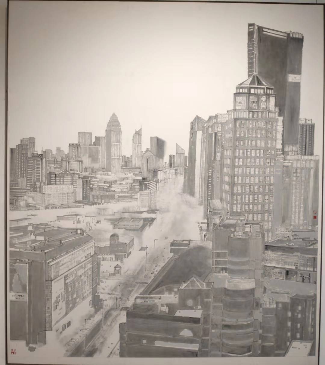 中国画作品“海河盛景”参加第十届全国文学艺术代表大会人民大会场展出,中国美术家协会收藏,
