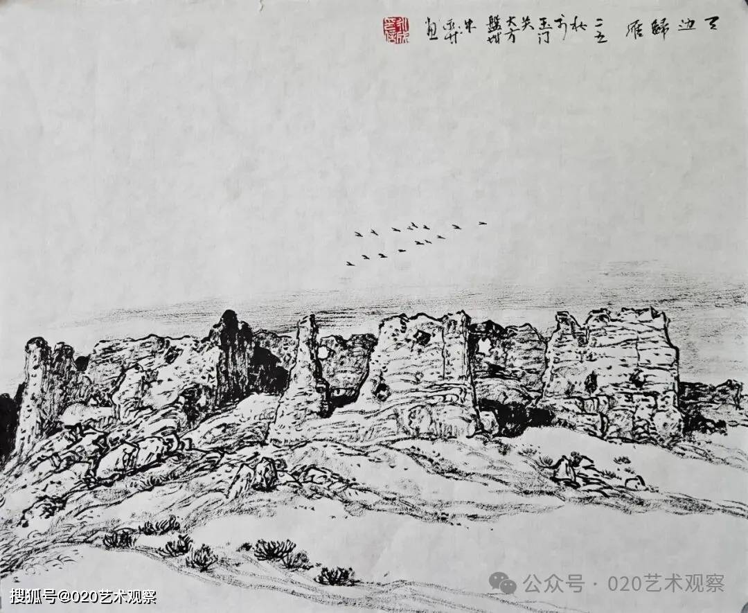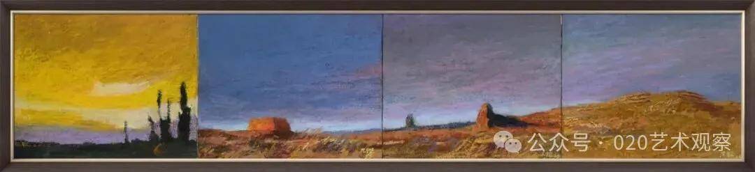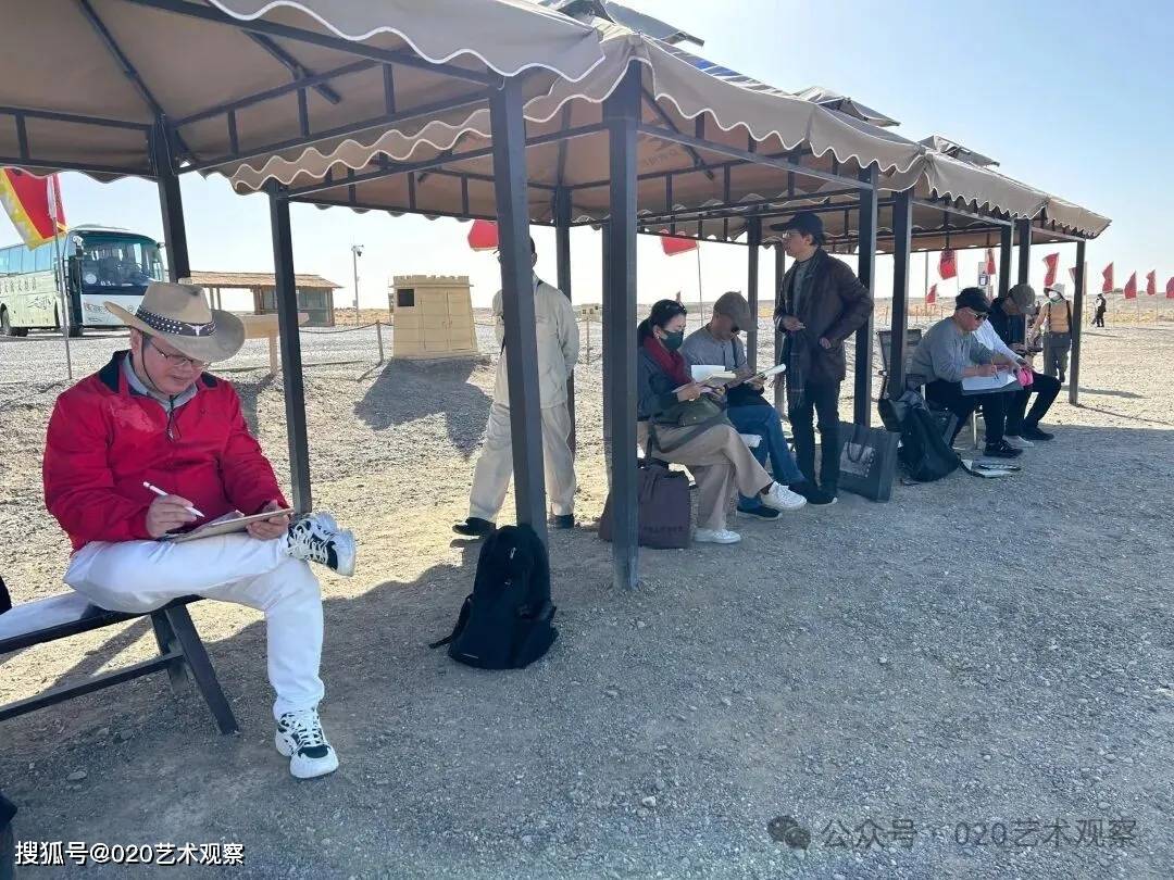 每次随老师们写生,发现他们选景和表达有某种质同,渐渐悟出,这恰恰反映了这群人内心世界的同质。从他们画作中可以领略“霜风捣尽千林叶”的飒,铅华褪尽赤丹存的节;从赵老师山壑皱褶里可以倾听大自然的喘息,从小华鸣沙山沙漠月牙泉,去感受任凭罡风淹没人生长句短章,不屑多一个句读的放旷;从楚娟那一片不屈野风的荒茅,去见识“任尔东西南北风”的士大夫气度;还可以循着陈铿的驼铃声,去追寻历史的足音......
